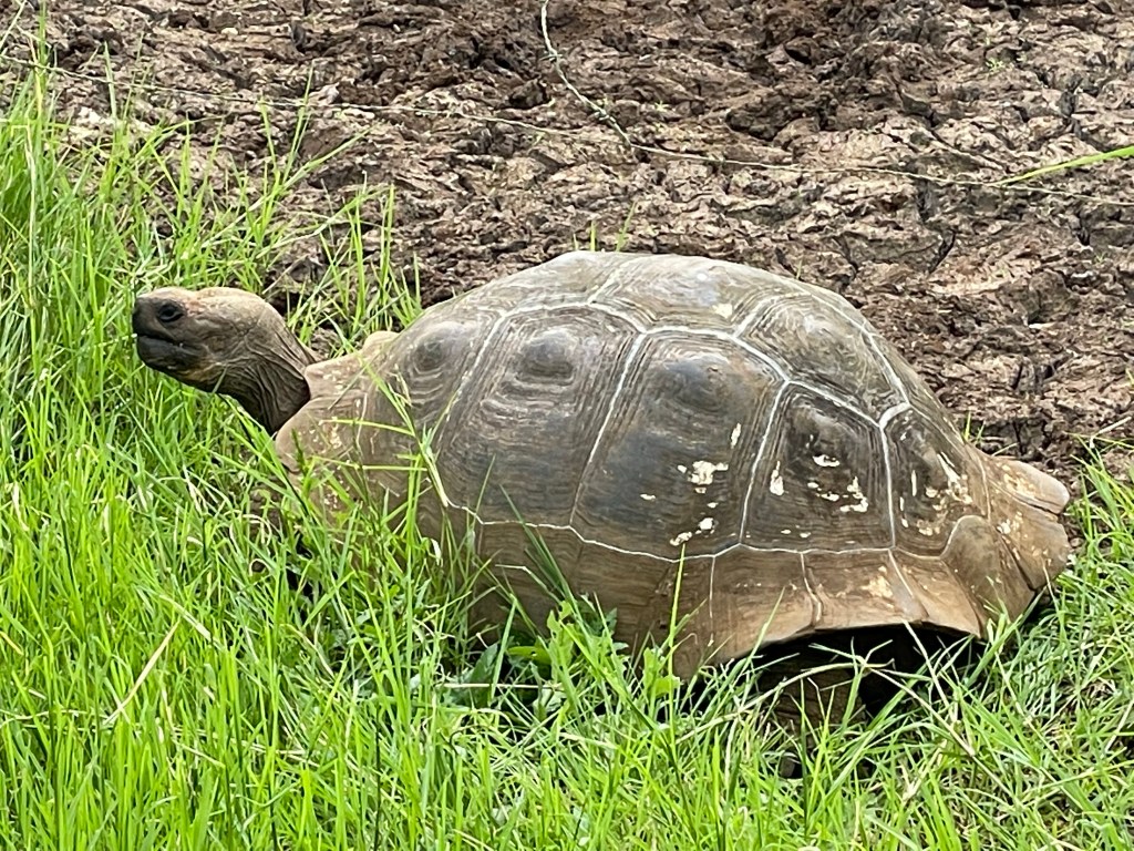 As if that wasn’t good enough, a minute or two later, Wilson pulled over and stopped the truck again, when a tortoise in a field across the road was spotted. We jumped out to ooh and ahh at our supposed final wild tortoise sighting before I turned around and realized there was another one just a few feet away from us, chomping away right on the other side of the sidewalk!