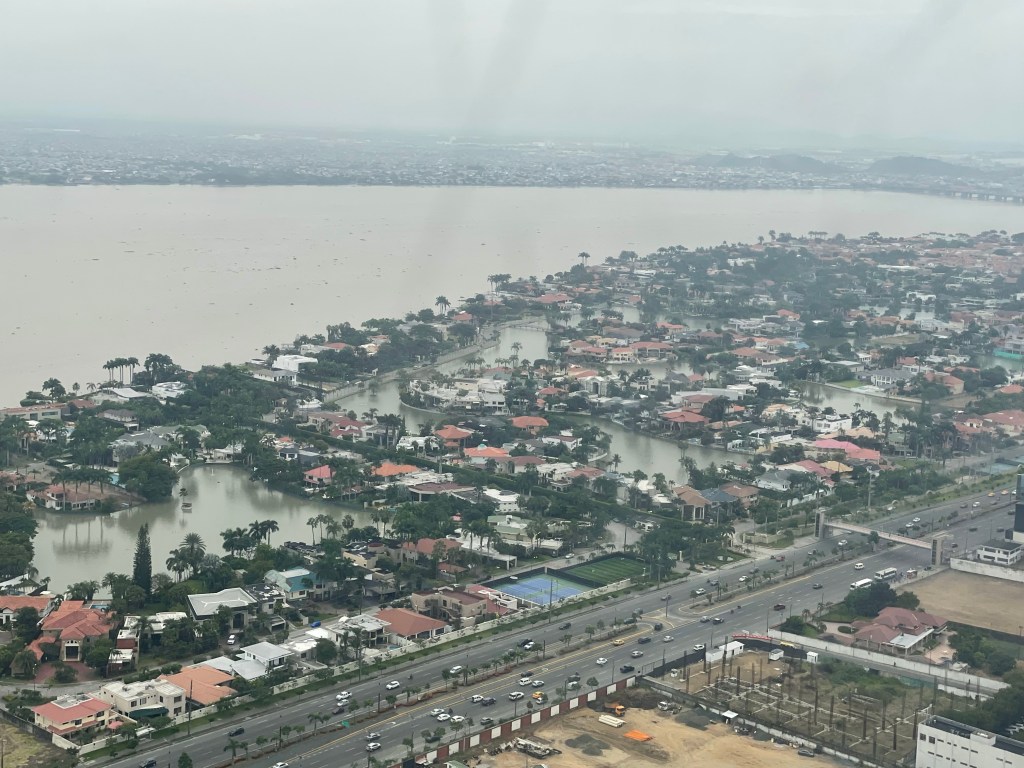 Reality snuck back into my fairy tale trip as I flipped up the straw of my life straw bottle for a refreshing sip and the water came erupting out like a water fountain; soaking my shorts and seat. Lesson learned on those types of bottles and air pressure! The air was hazy and overcast as the plane descended toward Guayaquil; the muddy brown river a sharp contrast to the clear blue waters I had just left behind. A 90 minute flight and it felt like we were worlds away.