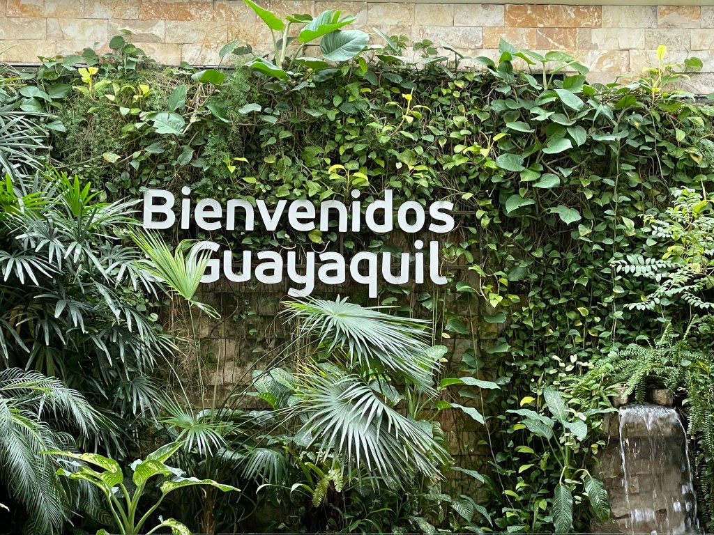 Guayaquil was as excited to let us in as I was to leave the dreamy Galápagos. Only one person deplaned ahead of us and we found ourselves locked in at the end of the jet bridge. To one side, a set of service stairs, roped off. To the other side and ahead, locked doors. We were locked in at the end of the damn jet bridge. I saw a man taking a break on the roped off steps and hollered for him to help us. He seemed confused but came to the rescue and, with a laugh and shrug, used his magic key card to open to unlock the doors so we could pass through.
