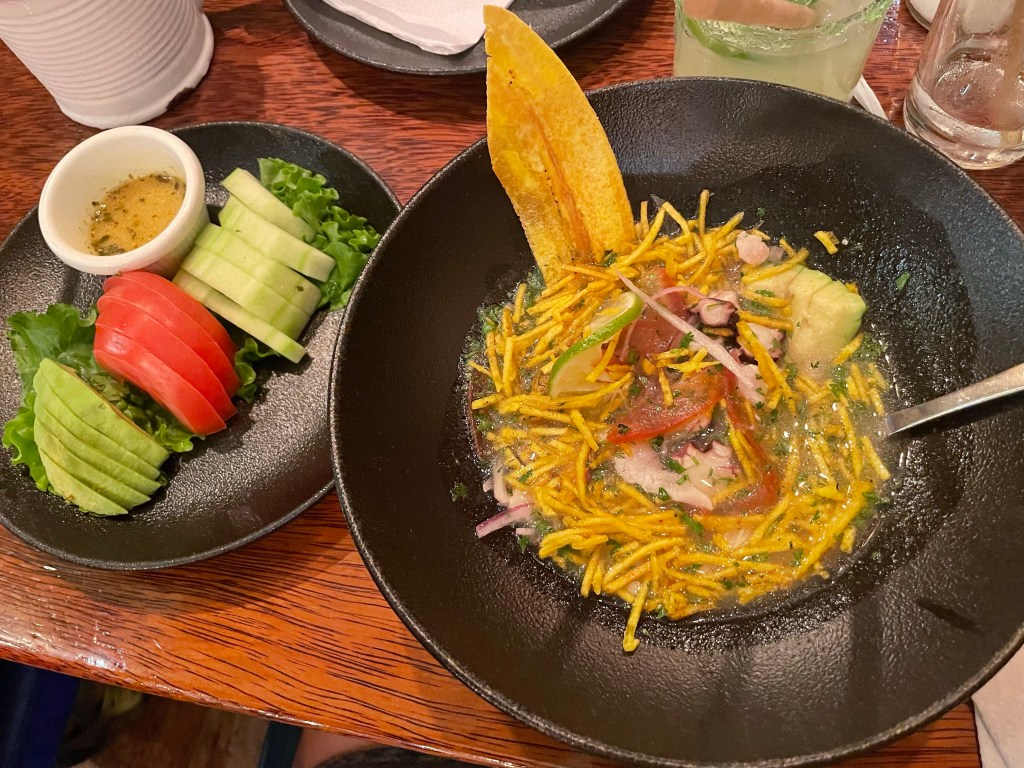 I was practically full from the appetizers and glad I went light with a ceviche and salad for my entree. The salad was slices of cucumber, tomato, and avocado. I mixed it all into my ceviche for one giant bowl of goodness. The restaurant started to close around us as we finished our meal, it wasn’t late, maybe 9pm, but they close on the earlier side. As a group, we decided that the walk back to the apartment felt unnecessary this time of night and we’d be best to just take an Uber; I fly out first thing in the morning so timing is a bit of the essence at this point. And quite frankly, we are all just plain tired.