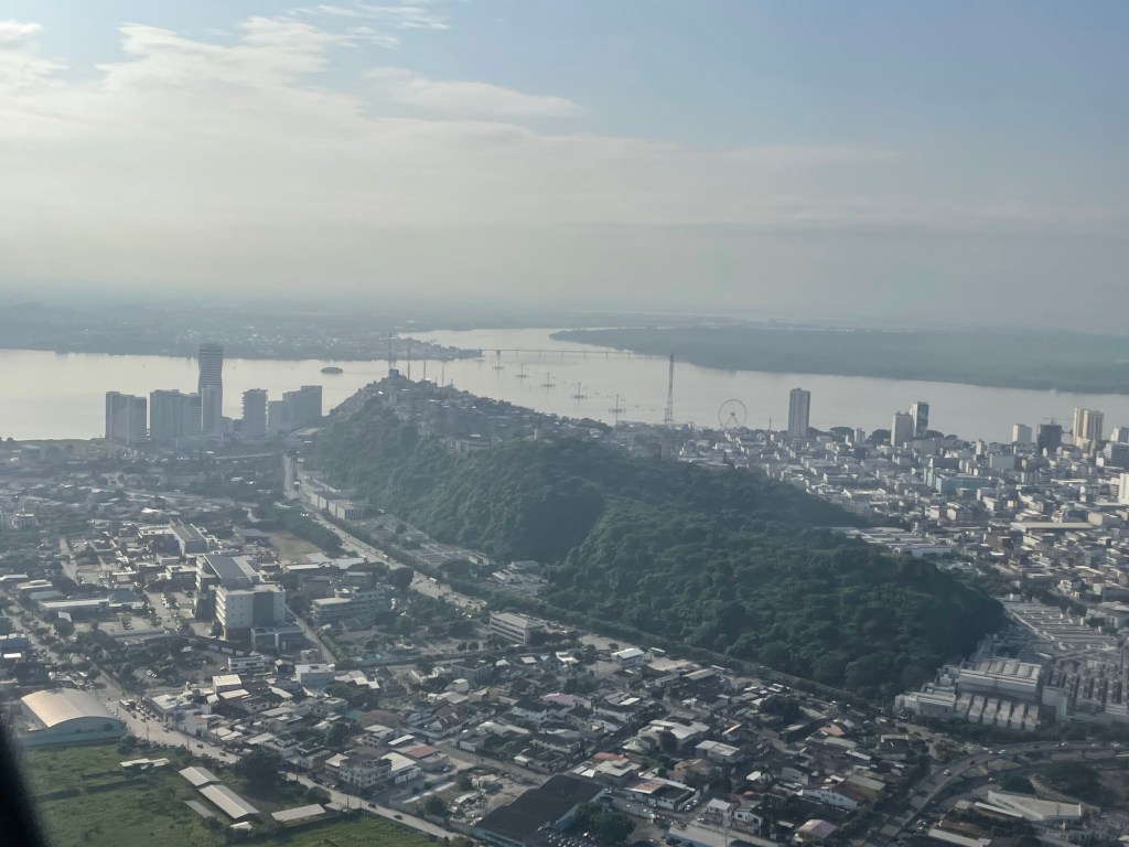 Guayaquil, started to slip away, dank and gray. From the air I finally got to see the White City Cemetery that I had been stopped from visiting on foot over a week ago. I was not sad to see Guayaquil slipping away; let’s be perfectly clear, the pictures I took of the town were the nice areas, not the norm.