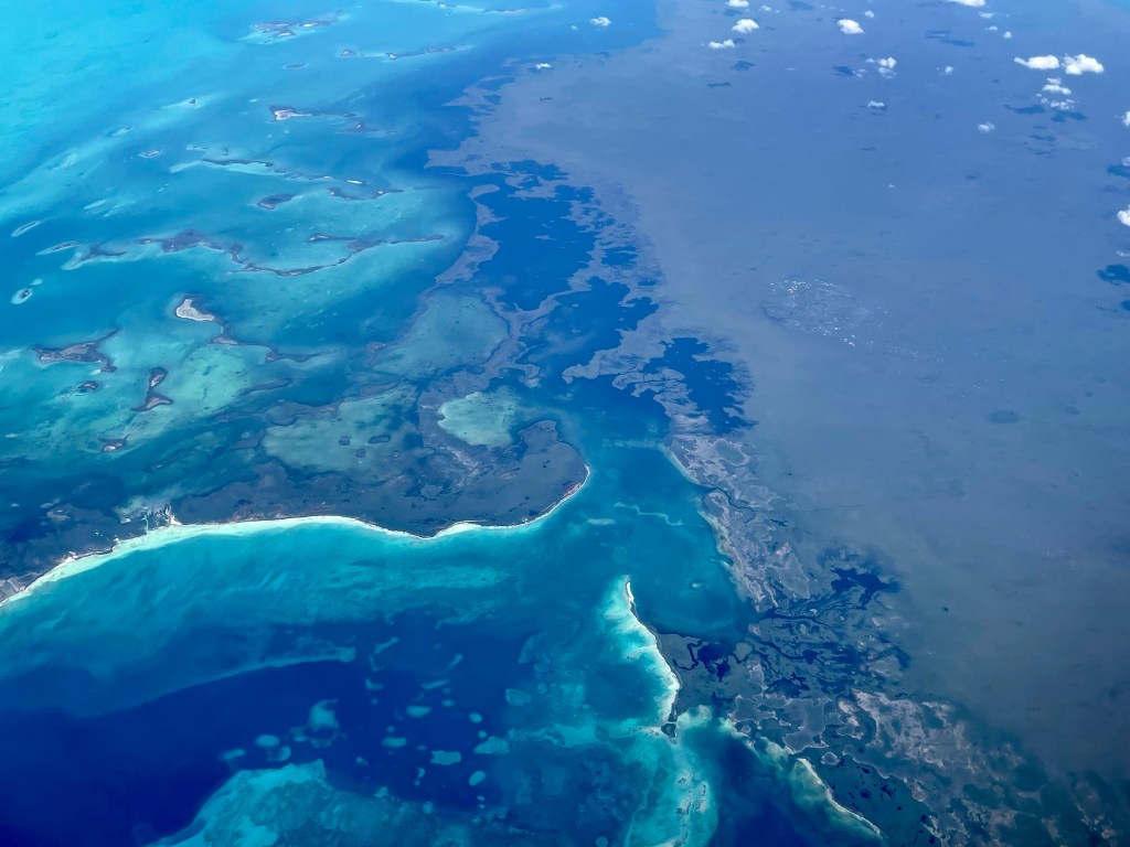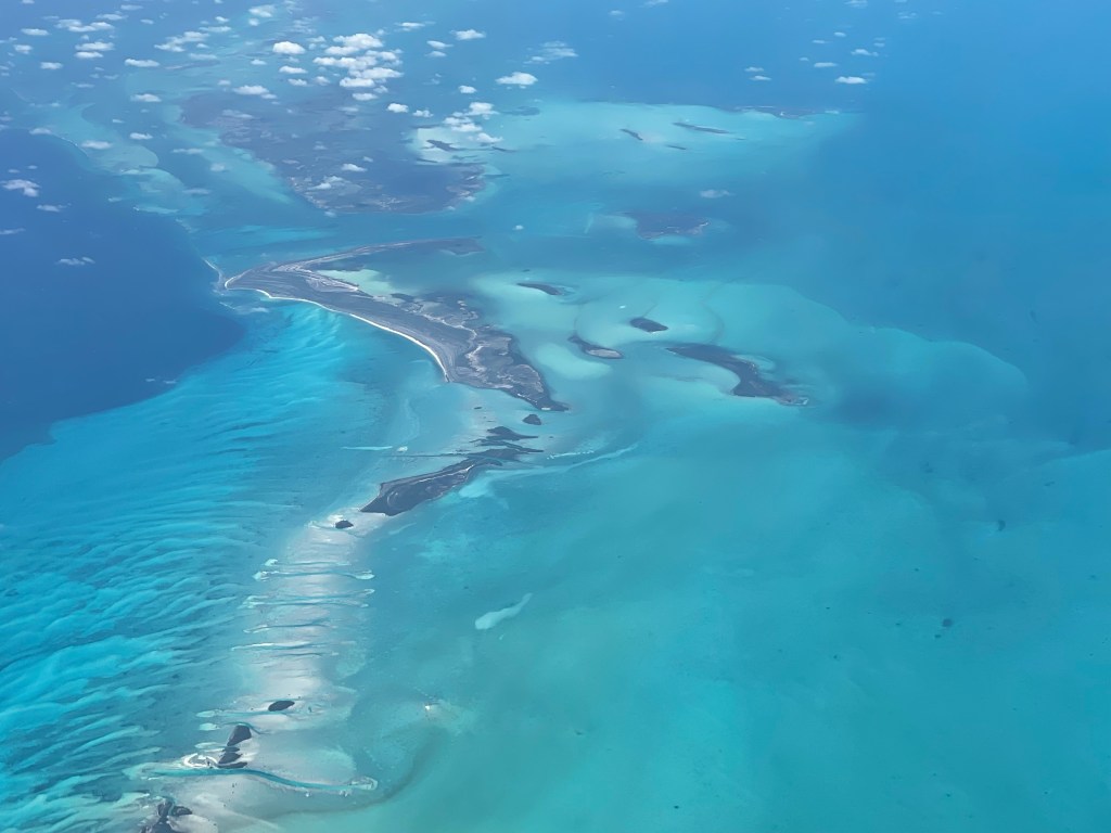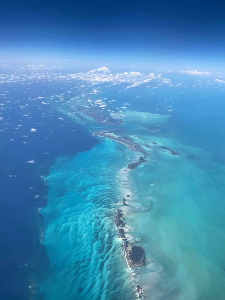 I was loving my quiet time on the plane; sitting by myself, writing and reflecting on this amazing adventure that’s now come to an end. Each of the islands in the Galápagos was so different; I can’t wait to go back in a couple years and visit the rest. Beautiful turquoise waters with white sand bars appeared under the plane, about 40 minutes from Miami. Where am I right now?! Where is this luxurious location? Is this just a blip of sand in the sea or is it somewhere I can visit? I made note to do some research.