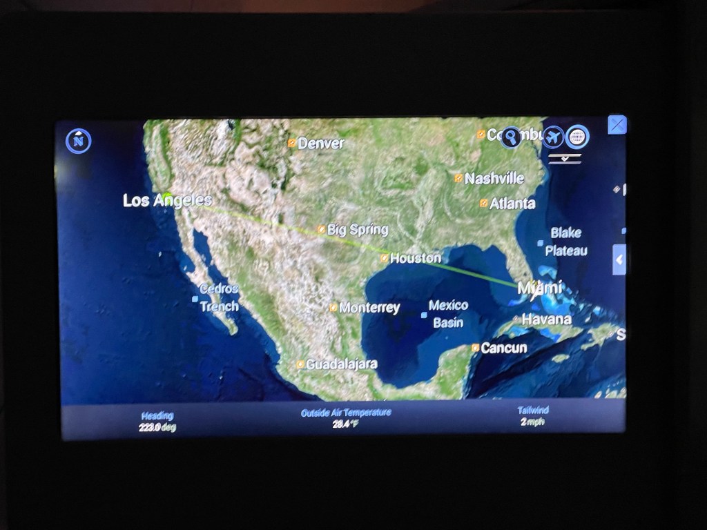 Leaving the lounge, it took way more effort than it should to find a place to fill my water bottle (WTF Miami? LAX also sucks for finding water stations). The gate agents continued the tradition of being rude, per Miami airport employee protocol, and finally I got to settle into my private little cubby on the ginormous plane for my five hour flight to LA.