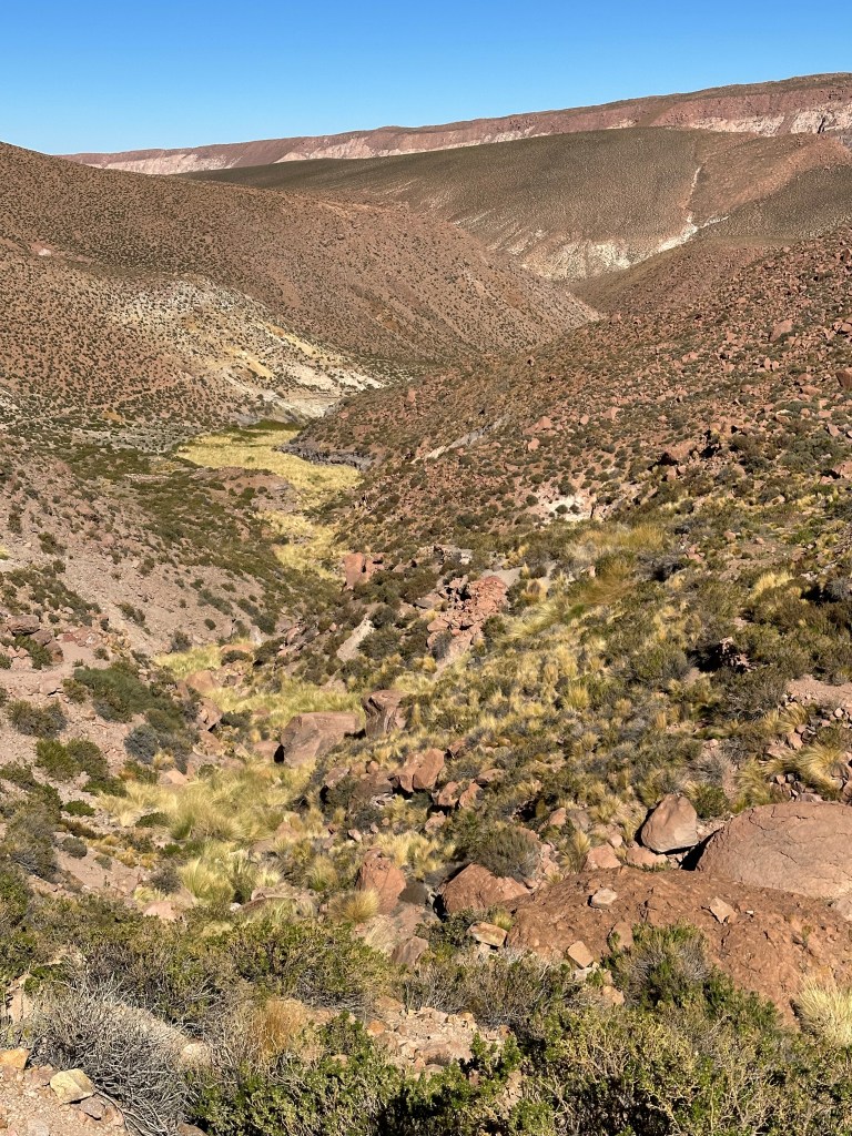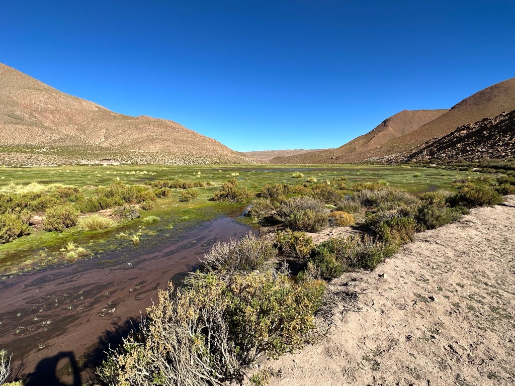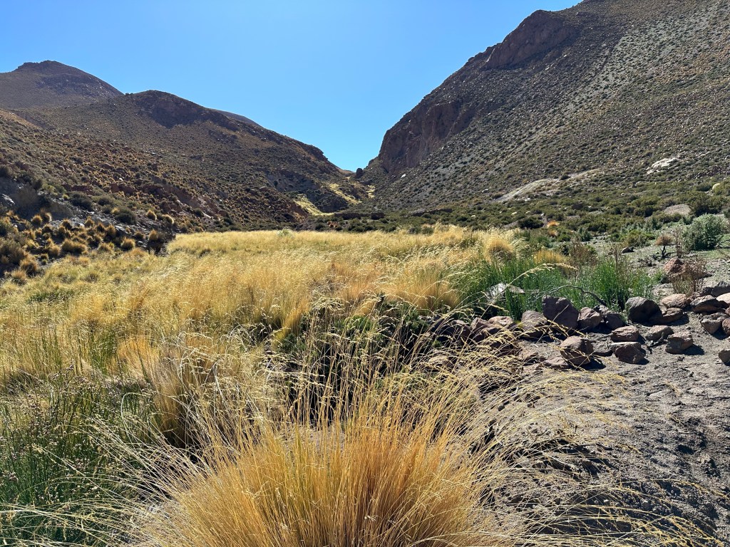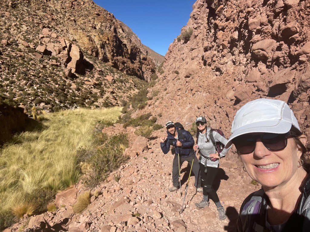 In Machuca, they had warned us that there is a puma with a baby that has been spotted in the valley lately, she likes to hide in the tall reeds, the tall reeds we would have to forge our way through. Despite my “heeeeeeree kitty kitty kitty” calls we never saw her or her baby; just evidence of her domain with paw prints in the dirt and guanaco or vicuña bones along the trail. Adrian was admittedly nervous about the possibility of crossing her path while Lynn and I joked with him that we appreciated his service in sacrificing himself to save us should the need be.