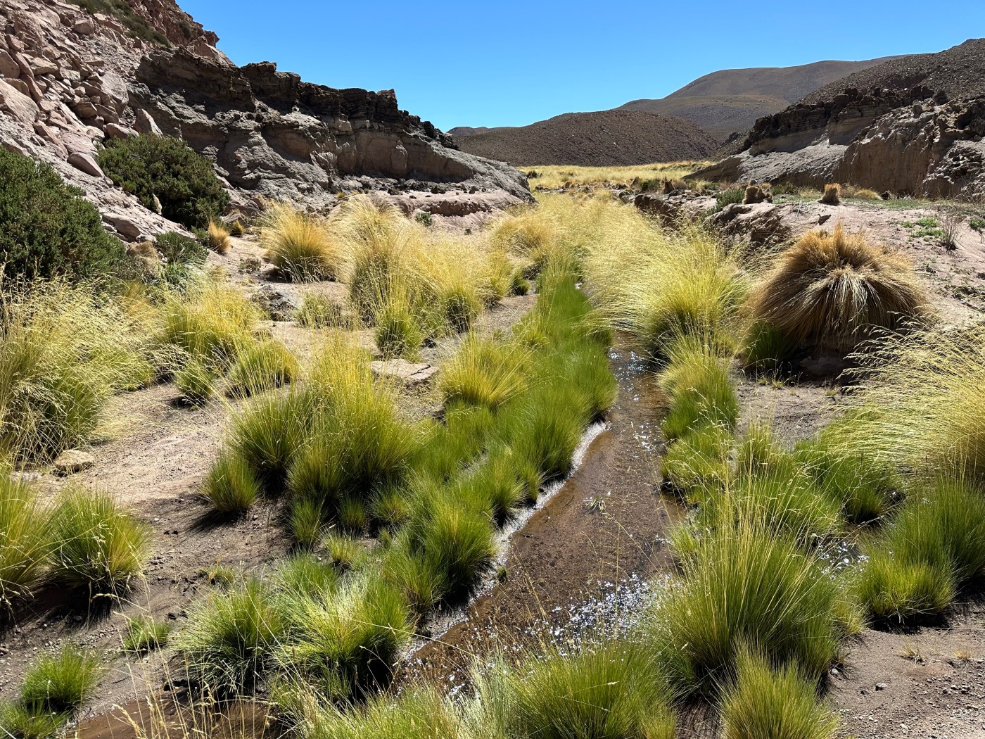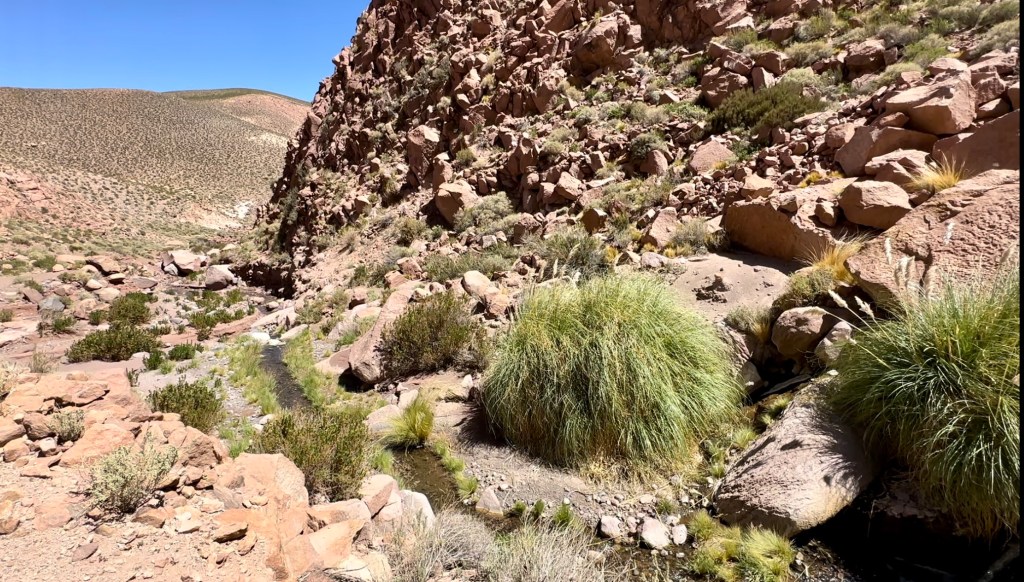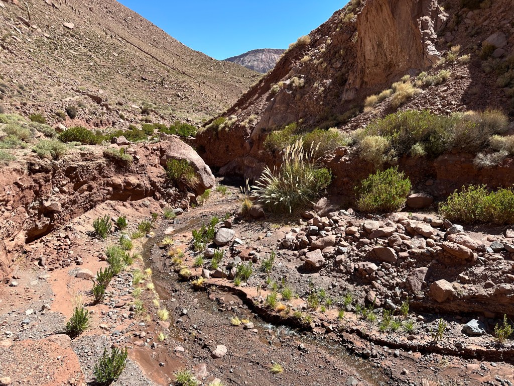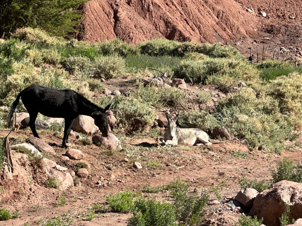 Towards the end of the hike we were out of the valley and back near a road; there was a point where our driver could have picked us up a mile or two early but both Lynn and I insisted we were fine and would rather continue our hike. Adrian did have him meet us so we could at least refill our water before we continued on, Ricardo following at a distance behind us. A couple donkeys were on the side of the road and when I inquired if the donkeys I had seen so far were domesticated or wild Adrian explained that they were a bit of both. Since we are so close to the Bolivian border, drug smugglers load the donkeys with packs full of cocaine and then set them free near the Chile/Bolivia border, knowing enough about their behavior to know where they will go to find food. The smugglers then cross the border legitimately, round up the donkeys, take the drugs, and leave them free to make new donkey lives for themselves in Chile.