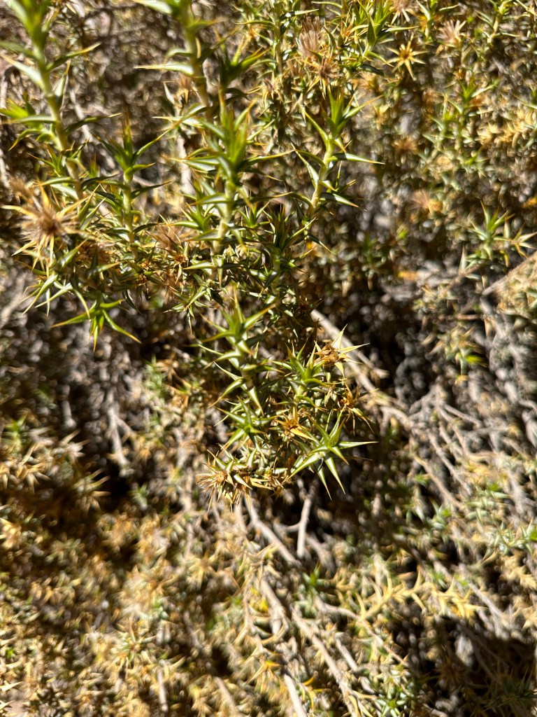 After rounding the wetlands, we found ourselves at the top of a valley, taking us down steep slippery slopes till we reached the valley floor. Bushy plants of cruel thorny branches lined the trail and my war with them began early in the day. While frustrating at times, the canyon was stunningly beautiful and the sound of the babbling river that runs through the entire valley provided a calming background serenade. Adrian kept having to evaluate different routes to see where we could safely cross; in all, we crossed the river 11 times today.