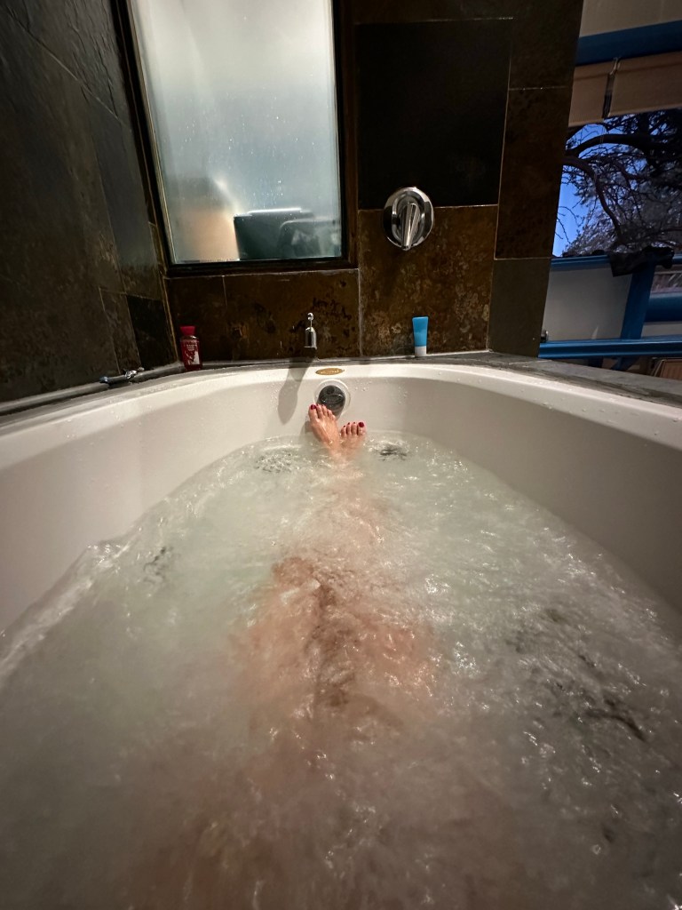 With a couple hours before dinner I took a bath in the jetted jacuzzi tub in my room and then grabbed my iPad and headed to the lounge area to relax and write for a bit before dinner service begins.
