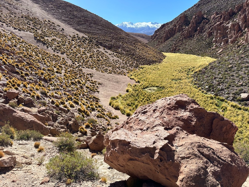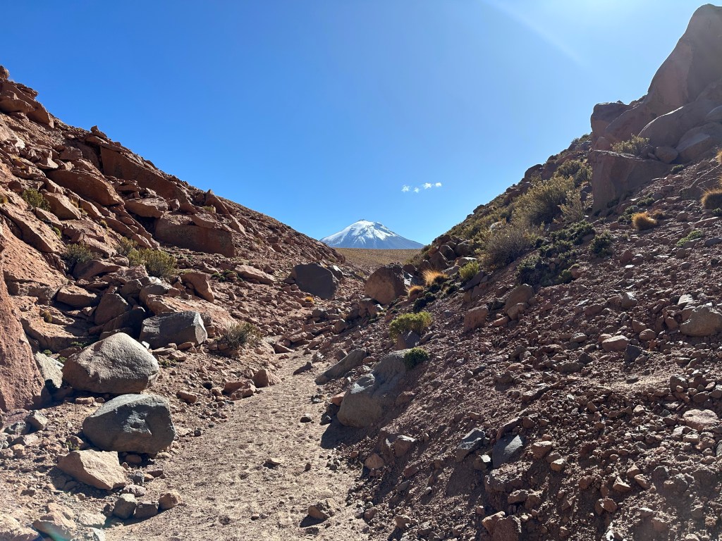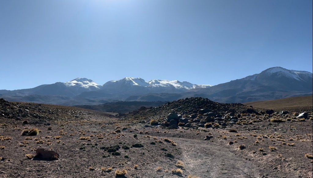 Incahuasi is the most advanced and technical hike offered through Explora, spanning 9 miles with a max altitude of 13,760’ and ending at the Puritama Hot Springs. Whereas my first full day I reached the hot springs with the shorter hike from the south, today I would be reaching the springs from the north. At the starting point, our guides explained that the main rule is that we would hike at our own paces but stay within visual range of each other. The guides pulled our pre-selected lunches out of the cooler and disturbed them to us. I zipped my sandwiches into my pack while Martha complained that her lunch was too bulky and she didn’t want to deal with carrying it, going on about what a pain it was and that she wasn’t going to take it. I was feeling really good about having my own guide. I rolled my eyes and said I wanted to stretch for a minute to put some distance between us from the start. Rafi explained that the area was once all glacier fields.