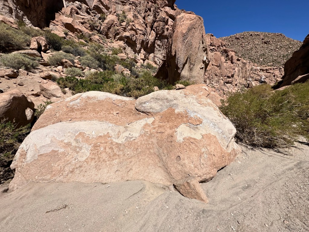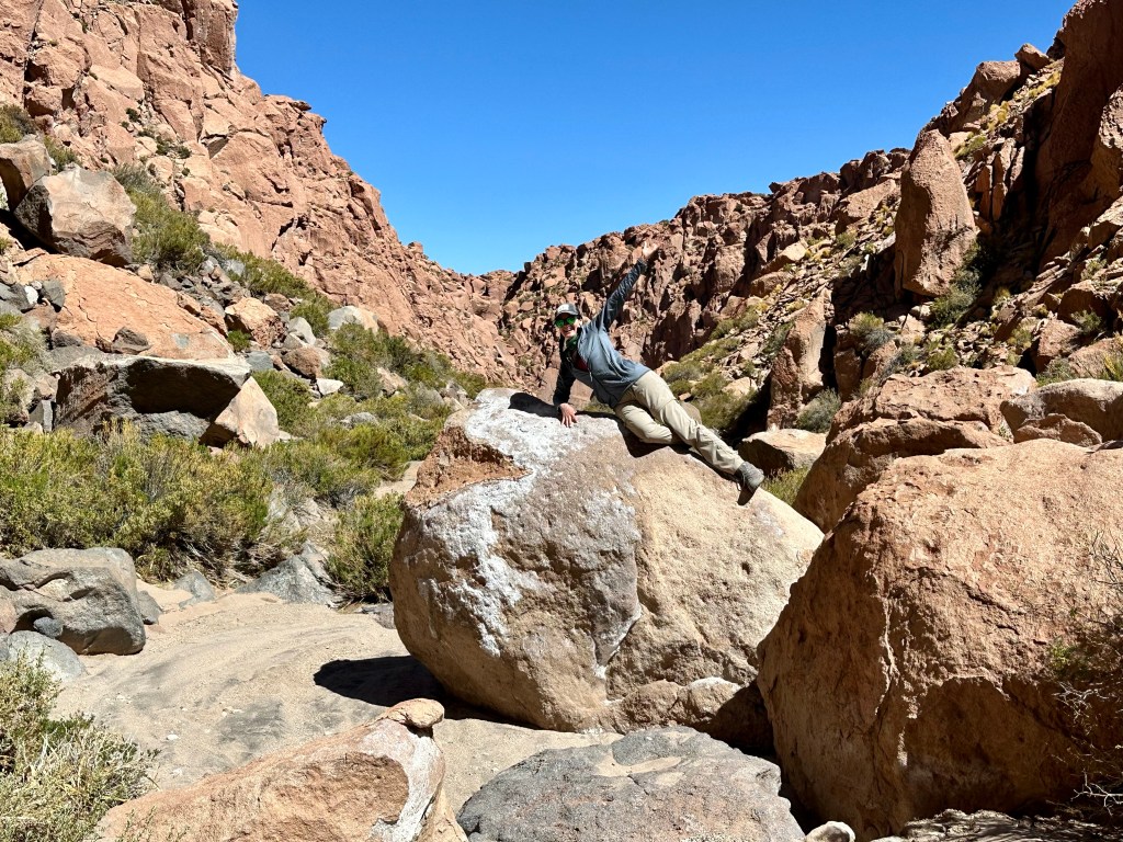 Three hours in, we found a shady spot to stop for lunch, with Rafi explaining that we were about 60% of the way through the hike. My prepared sandwiches from the lodge were lame and I combined the sandwich guts to make one heartier sandwich instead. The food program at Explora is definitely their biggest opportunity for improvement but apparently they have a new Peruvian chef who will be redoing their menus soon. Rafi pointed out boulders in the midst of erosion, looking like snakes shedding their skins.