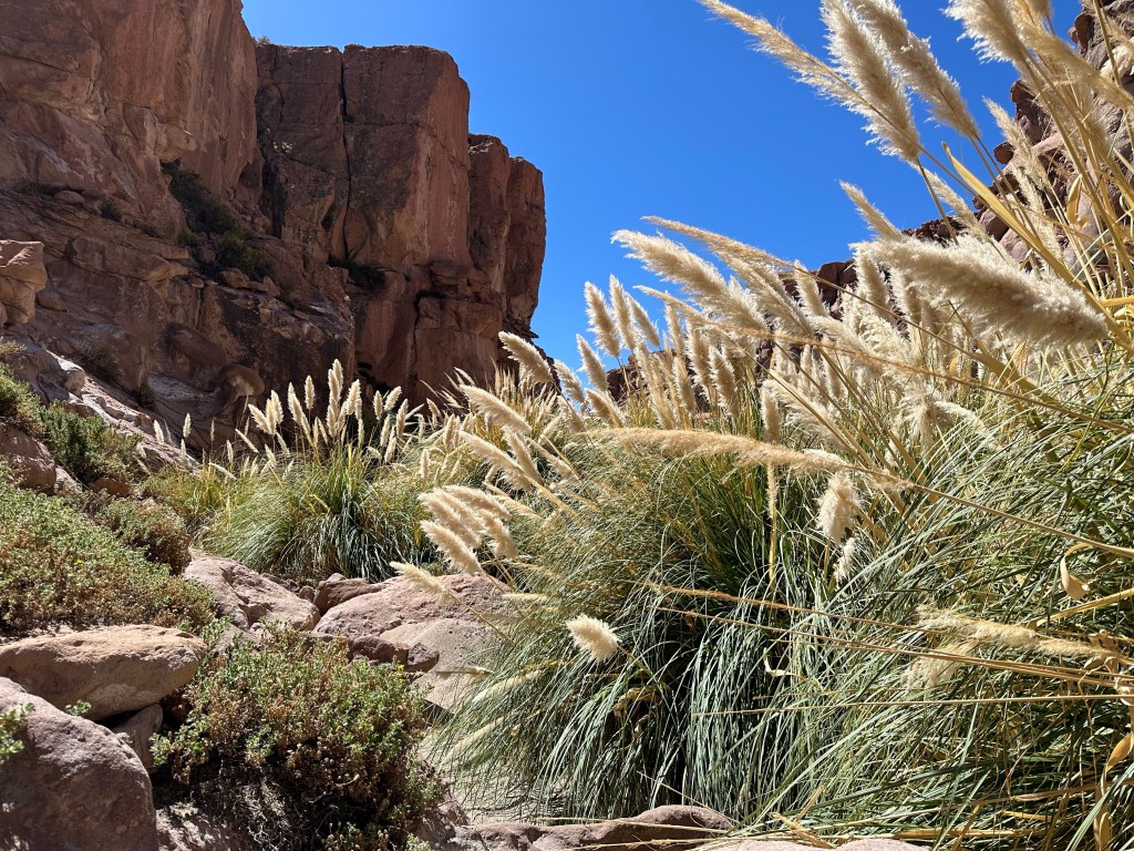 After lunch, the trail was relatively friendly until we reached a dense canyon floor forest of giant reeds with their fluffy feathered I-don’t-even-know-what-you’d-call-them. Rafi explained that this was the most critical part because he had to figure out the right path for us to get thru successfully to continue on. With some trial and error we made our way through the dense foliage. I was getting frustrated because Rafi would forge ahead before communicating his plan and next thing I know I’d find myself trying to follow with almost zero visibility, and no warnings from him when the ground dropped out below the reeds and fluff fell off the plants and flew up my nose. I’m lucky I didn’t turn an ankle at the least and more than once I may have asked out loud, “What in the actual f*^@ am I doing?!”