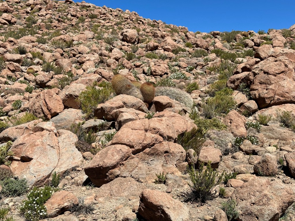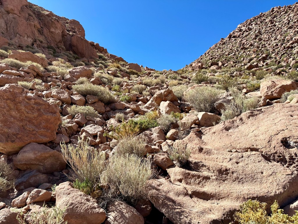 Though the majority of the rest of the terrain was relatively flat, it was a pain in the butt to hike through. Loose rocks and gravel made for dangerous steps and little ground cactus were everywhere, threatening massive pain. After getting a cactus quill stabbed straight through my hiking boot into my big toe, my steps became even more cautious. It was starting to feel tedious. I didn’t have a good grasp on how much further we had to go and each and every step took so much care and caution so as to not get cactus stabbed I was feeling mentally drained. Though I don’t mind being alone, having a guide nearby to at least distract me from my frustration could have been nice. The final descent was a steep downhill and Rafi again left me to figure out which would be the most stable route and find my own way while he waited at the bottom.