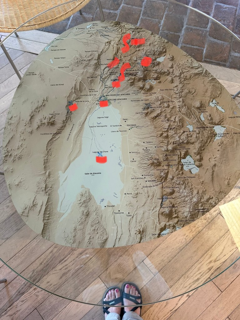 Tomorrow is my last day, I leave for the airport at 12:30 so I have time for a morning exploration. The only part of the desert that I feel like I’ve missed out on in is visiting a salt lagoon to float. Earlier in the day when Rafi and I discussed how I should spend my time tomorrow he suggested that I would have time in the morning to do the bike ride to the lagoon. But after how slow I was today when we got back to the lodge he declared that the only thing I’d have time for in the morning would be horseback riding. My ego wanted to argue with him that I could manage the damn bike ride but the reality is that my quads needs a break and I did want to try to ride a horse so I just agreed. While I had his attention I had him help me find, and mark on the map, the areas I’ve explored so far this week.
