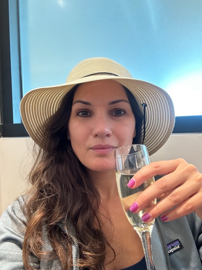 Ronald was momentarily embarrassed when I got up to use the lav and caught him doing the chicken dance in the galley. Whatever that man is on, I want some! Returning to my little pod, Aussie was crankily sitting his seat back up, asking, “Did those little fuckers disturb you last night?” I confirmed that he was the lucky one who got some sleep because I got NONE.