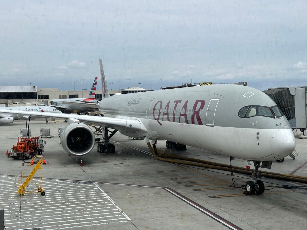 It wasn’t much longer after my breakfast, which in my soon-to-be local time zone was actually a late afternoon lunch, that the plane began its decent; landing as the sun set over Doha. That was a ridiculously quick and comfortable 15+ hour flight. It’s been 24 hour since I left home and I still have about 14 more hours of transit time to go.