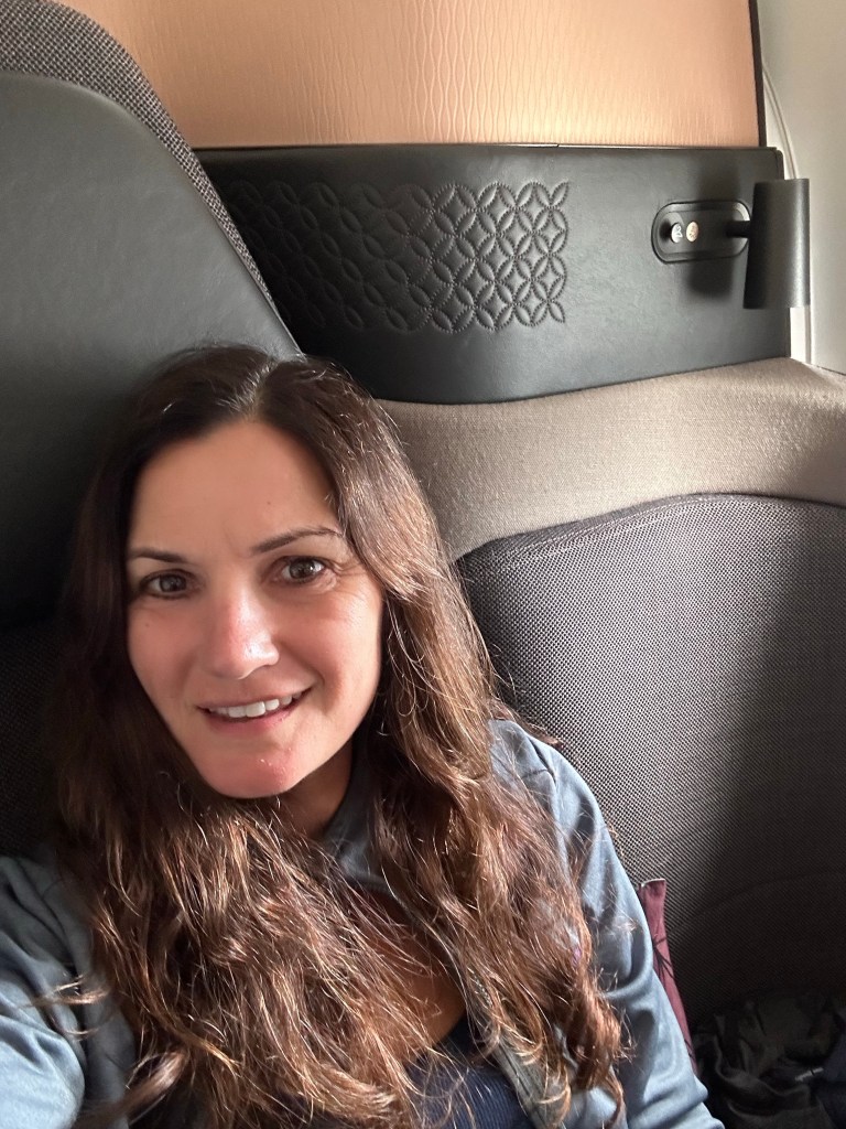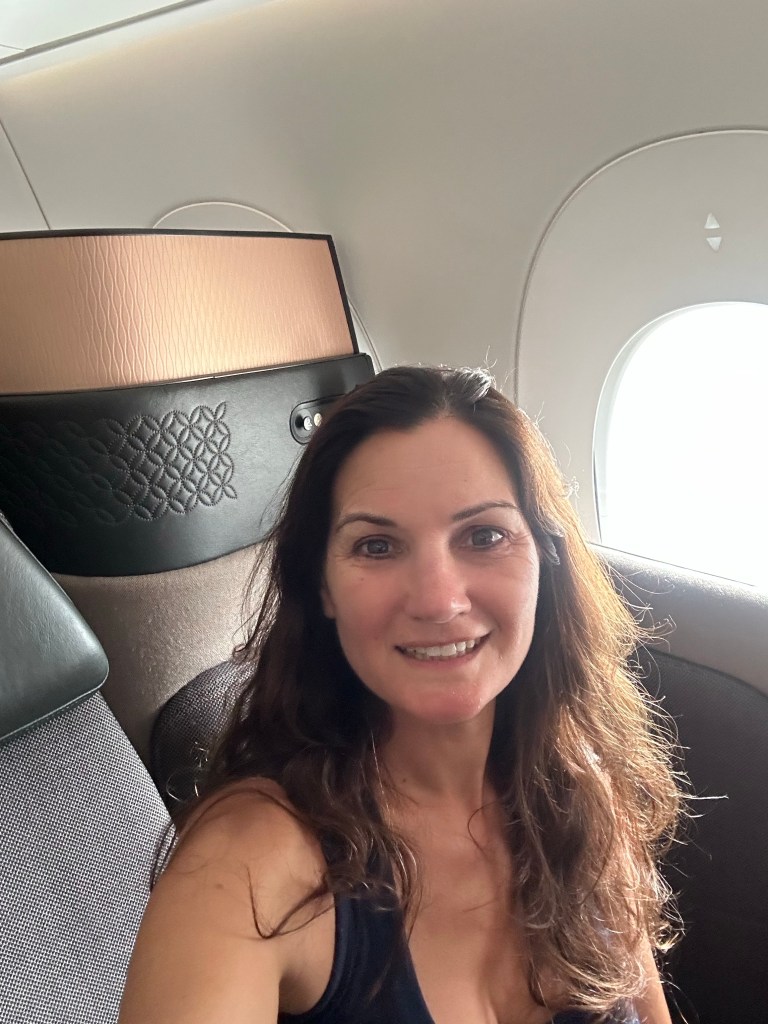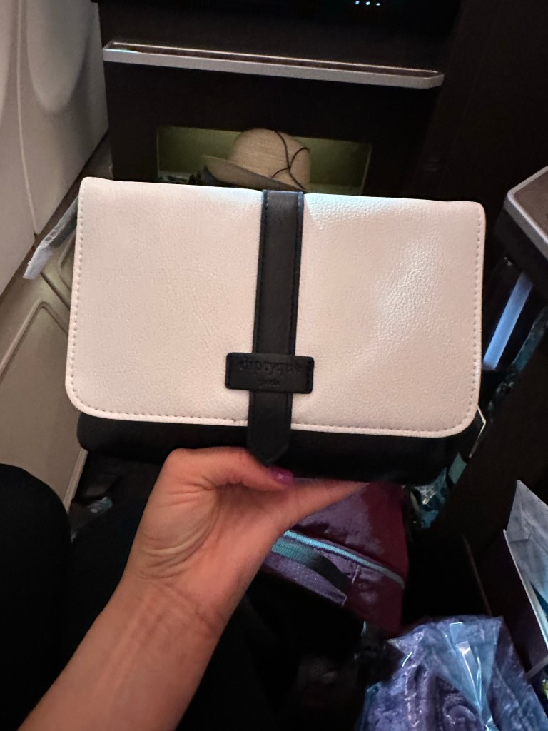 My flight attendant, Karna, introduced himself and handed me a warm towel, its floral scent refreshing and lovely without being overwhelming. After the towel had been collected the scent remained and I realized that the box of the Diptyque amenity kit was even scented. My senses were alive and dancing. I get an oddly overwhelming sense of peace as soon as I settle into a luxe business class seat and it had set in before the plane was even done boarding.