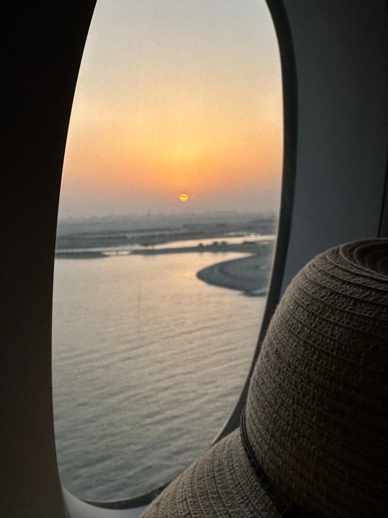 I think I’d like to come back and visit Doha sometime, the brilliantly lit buildings and island dwellings look like a magnetic playground below as the flight circled over the water and ascended.