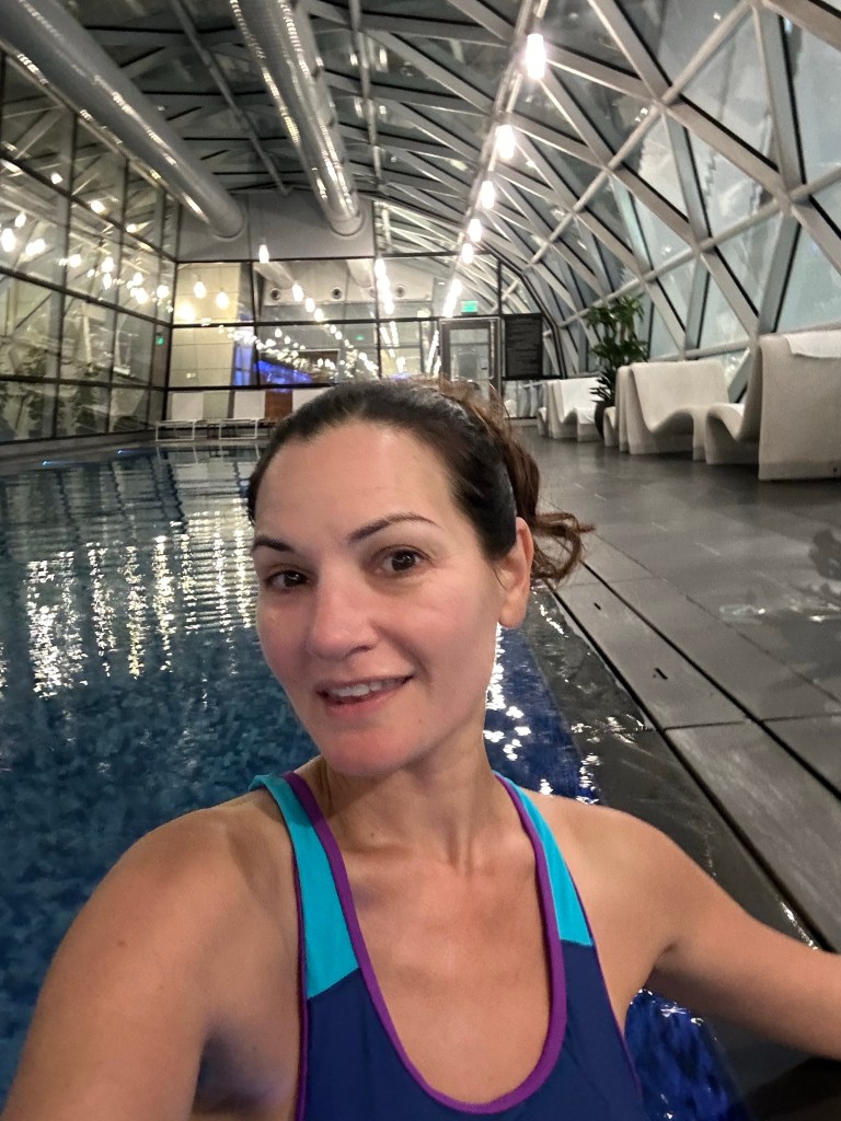 My massage was fantastic but there was no aromatherapy involved in my aromatherapy massage, like none, not even a scented oil. Not even scents to inhale before she started. Nada. However, the fact that Lisa even massaged my tummy made up for it. After my massage I headed into the pool, but was quickly bored and almost as quickly realized that the novelty of being in a pool, in the airport, may not be worth now having to put a wet bathing suit in my luggage. There is a full gym as well but I didn’t have the right outfit for a workout.