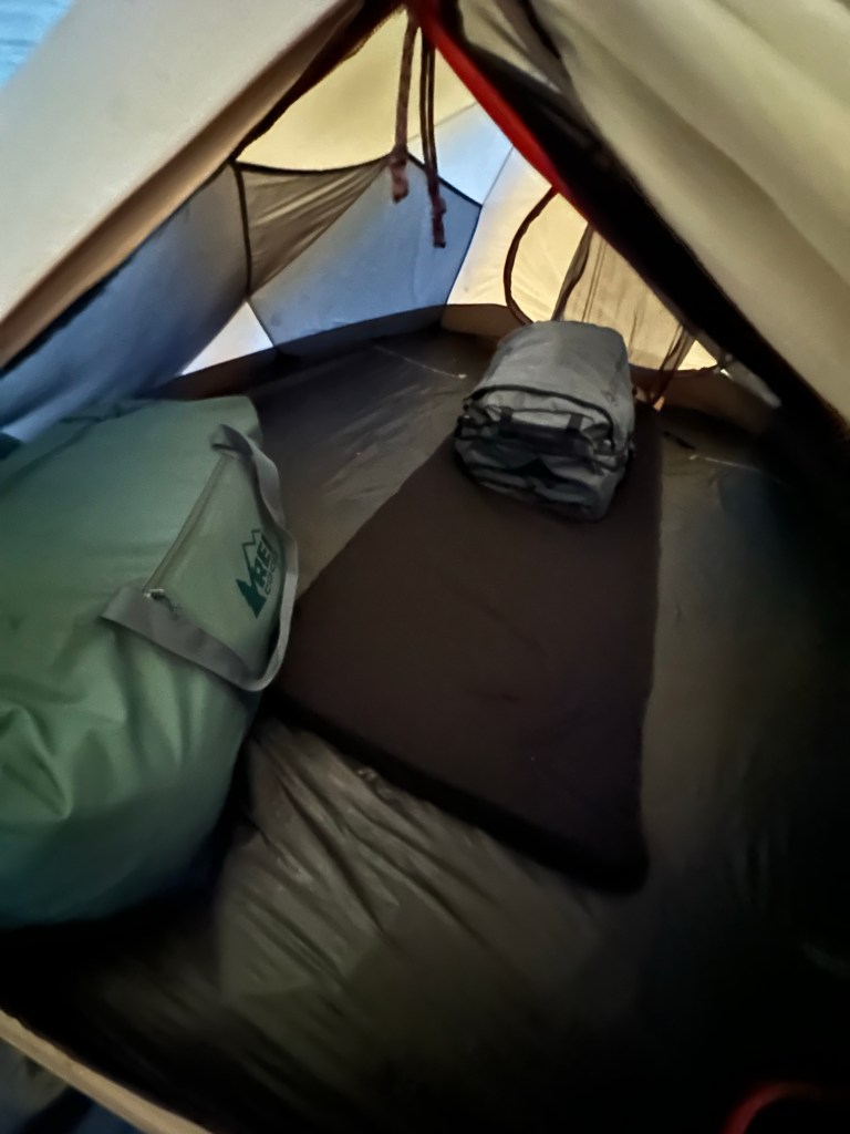 And then I pretty much just sat there. I’ve never done this camping thing before. Never. I have never slept in a tent in my life. And I didn’t know what to do with myself so I just sat there. Unsure how I feel about this camping thing, unsure how I’m going to do this, unsure what I’m supposed to do to be efficient in here, unsure if I’m terrified or ok with this. I just sat with my uncertainty and didn’t get shit done.