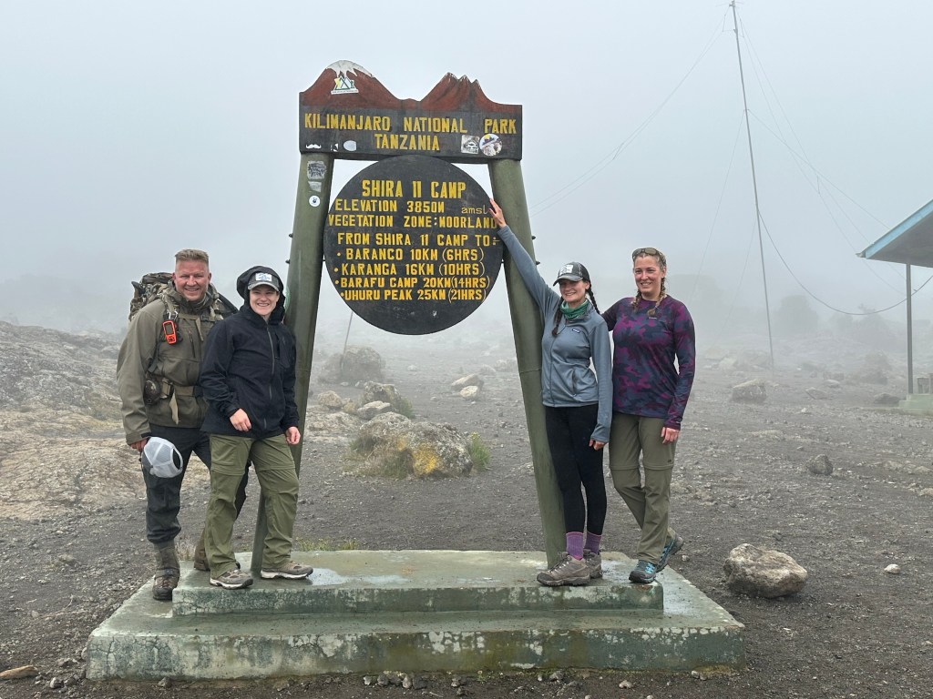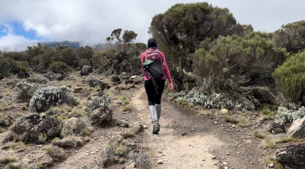 Our blue sky started to turn cloudy and grey but at least we were still dry! We stopped for a snack break and Shane shook his head in amusement at how it is us girls that are the gross ones with our constant burping (me) and farting (Katie and Kyra). He admitted that he made a comment to Saidi apologizing for us and Saidi told him that all the women are like us on the mountain! As I munched on snacks, Shane told me that he was impressed with my appetite and can’t believe how much I eat; asking how is it possible that I’m not his size because I seem to eat just as much as him! Easy, five days a week strength training and seven days a week walking 3-5 miles each day.