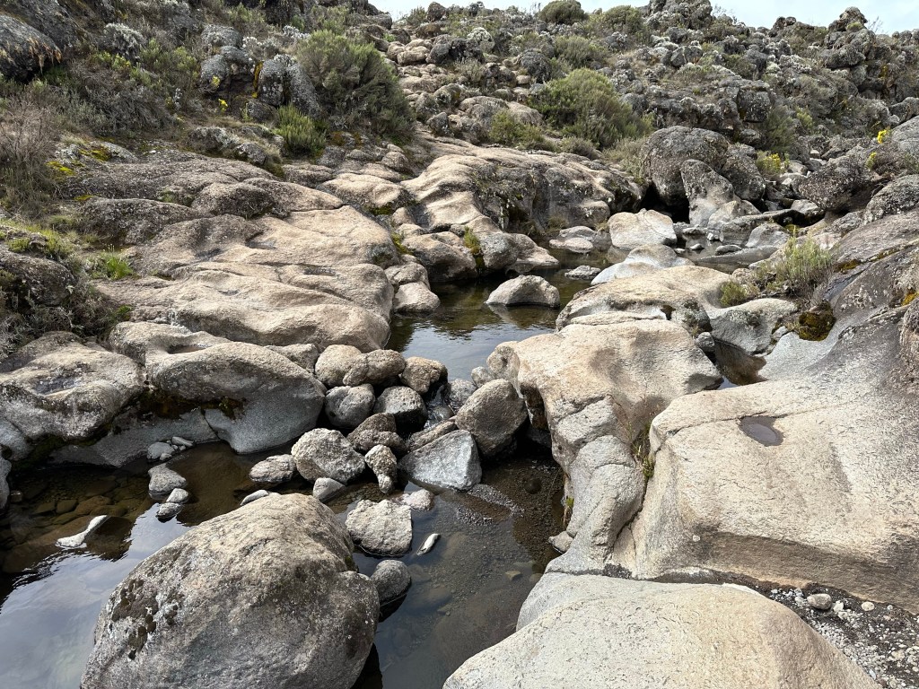 Crystal clear streams flowed, lined with sun drenched boulders; another new terrain for us though we are still in the heath moorland climate zone.