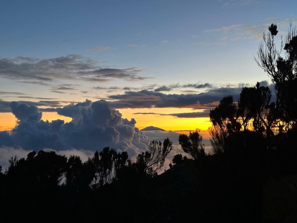Kyra and I collapsed into camp chairs and Katie immediately went into her tent to lie down. Saidi and Shane joined us to discuss our plan now. It was already 2pm. Since our summit had taken so long and we were so exhausted we had a choice to make. We could trek from here to Millennium Camp and stop there for the night or we could continue all the way to Mweka Camp as planned. We just climbed up and back down 4,000’ to summit and Mweka Camp is another 5,000’ down, and about 3 hours past Millennium Camp. The ideal and original plan is to make it to Mweka Camp so we are back at low elevation, only about 10,000’ so our bodies can better recover. I didn’t know how I was going to take another step period but I knew that Katie was worse off than I was so I suggested that we see how she feels.