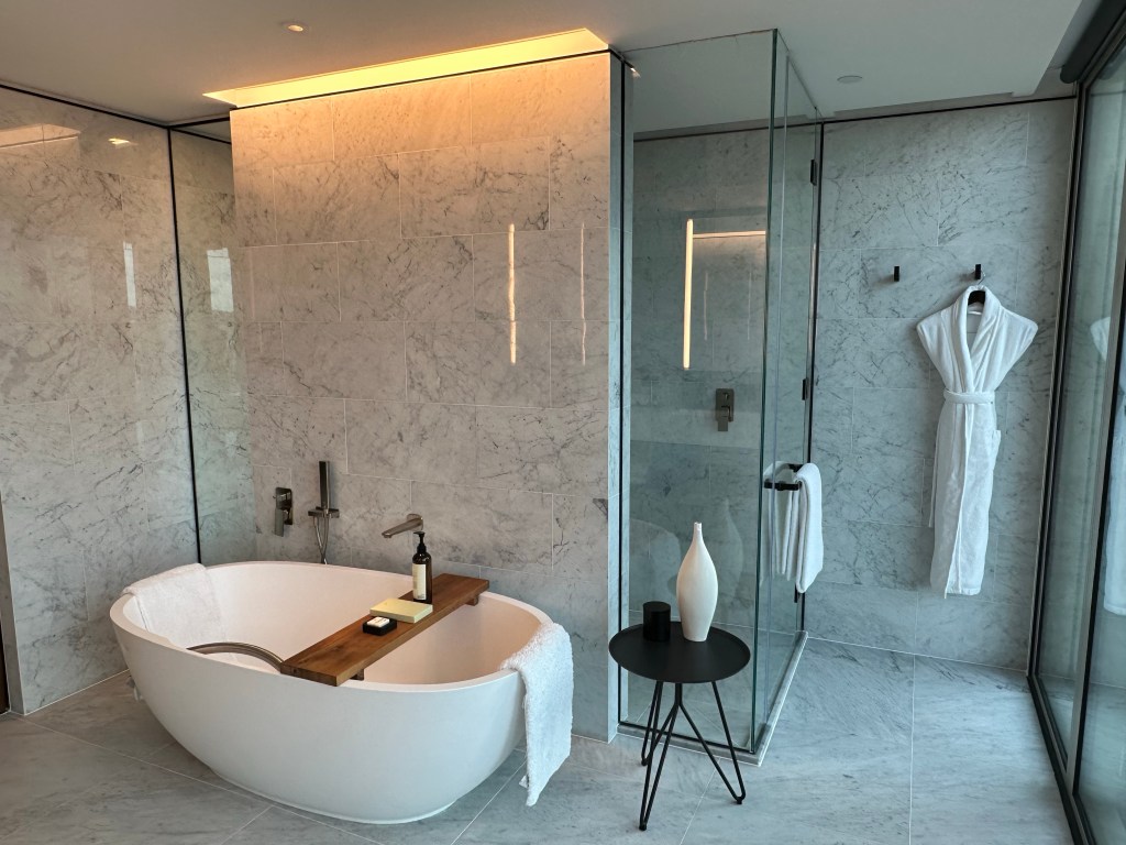 One thing I love about other countries is that they don’t gauge like in the US for so many things. For example, room service. The room service is the same menu and exact same pricing as the restaurant without any added fees. It was an oysters and salad type of night. Both delightful. The oysters also some of the best I’ve had. I have no idea what kind they were but they were so fresh, so subtle, and perfectly shucked. The freshness was palpable.