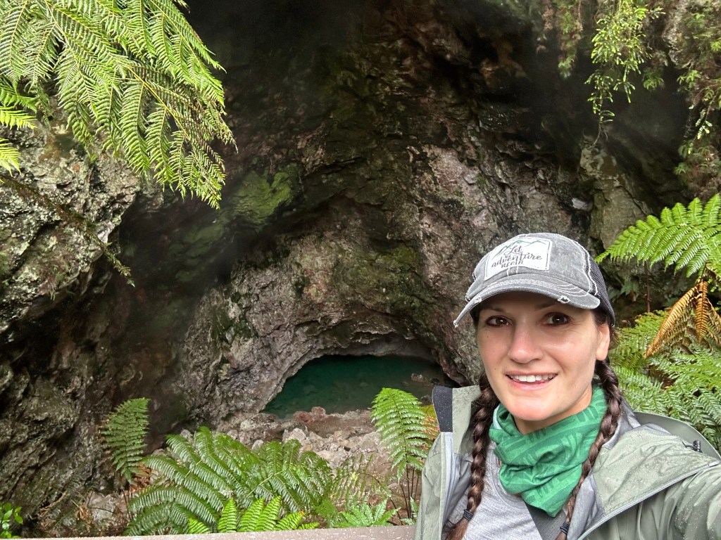 Moving on from the Huka area, I navigated the short distance up the road to Orakei Korako Geothermal Park. I have been here before but it’s so beautiful I felt it a worthy stop to revisit on my way. Getting into Orakei Korako requires taking a boat across a small lake. The Skipper let me know that there were only a few other people on the trail at the moment so I should pretty much have the area to myself. Awesome! I wandered along the boardwalks over silica embankments of sulphuric terraces, past geysers and steaming hot springs, and recreated a selfie I took 5 1/2 years at the Rautapu Cave. I may look older now but man it’s worth it to get to such a great point in life. The bubbling mud captured my attention and I spent minutes standing there just watching the mud bubble and listening to the “pop pop pop.” It is ridiculously soothing, this is the best white noise ever. I think I need a bubbling mud soundtrack to fall asleep to at night. I wonder if it’s possible to get some type of faux bubbling mud fixture, like a zen garden but with bubbling mud. While it sprinkled a bit, the rain mostly held off which was a welcome relief. Just as I boarded the boat to cross the river back to my car the rain started coming down heavy again; it’s like the rain gods were just being kind and giving me a break. And I appreciated it.