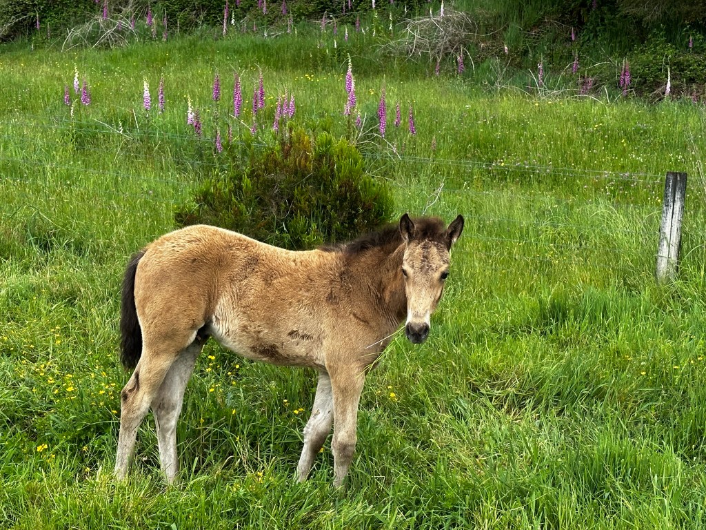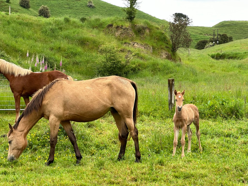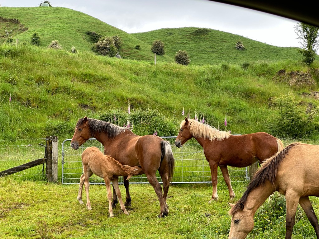 Ran drops started to fall as soon I pulled out of my parking spot; talk about timing! I drove slowly back down the roads, dodging the rain filled potholes on the gravel road and prepared for any stock to meander out onto the paved roads. The horses weren’t far from where I had seen them on the way out and I had to wait for a little colt roadblock to finish crossing before I could continue on. I considered trying to get out of my car and see if they’d let me near but my good judgement won over.