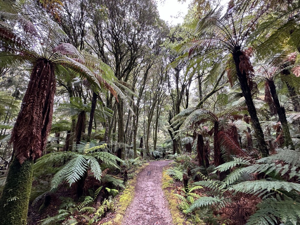 It was already after 3pm and I sat in my car wondering what to do with myself now. The shorter trails in the area are all closed due to flood or bridge damage. There is a 3 hour track just a few more minutes down the road I had on my list as well as another 90 minute track a couple miles away. I didn’t know if I had it in me to take on another 3 hours, this one with more climbs, and my feet were threatening to blister. I did have some cell service amazingly enough so I sat in the car for a few minutes, happy to hear from C and exchange a couple messages, before deciding that my smartest course of action would be to head back towards Rotorua and find a closer trail so I’m closer to food given that there was a whole lot of nothing in the hour plus drive from Rotorua to here.