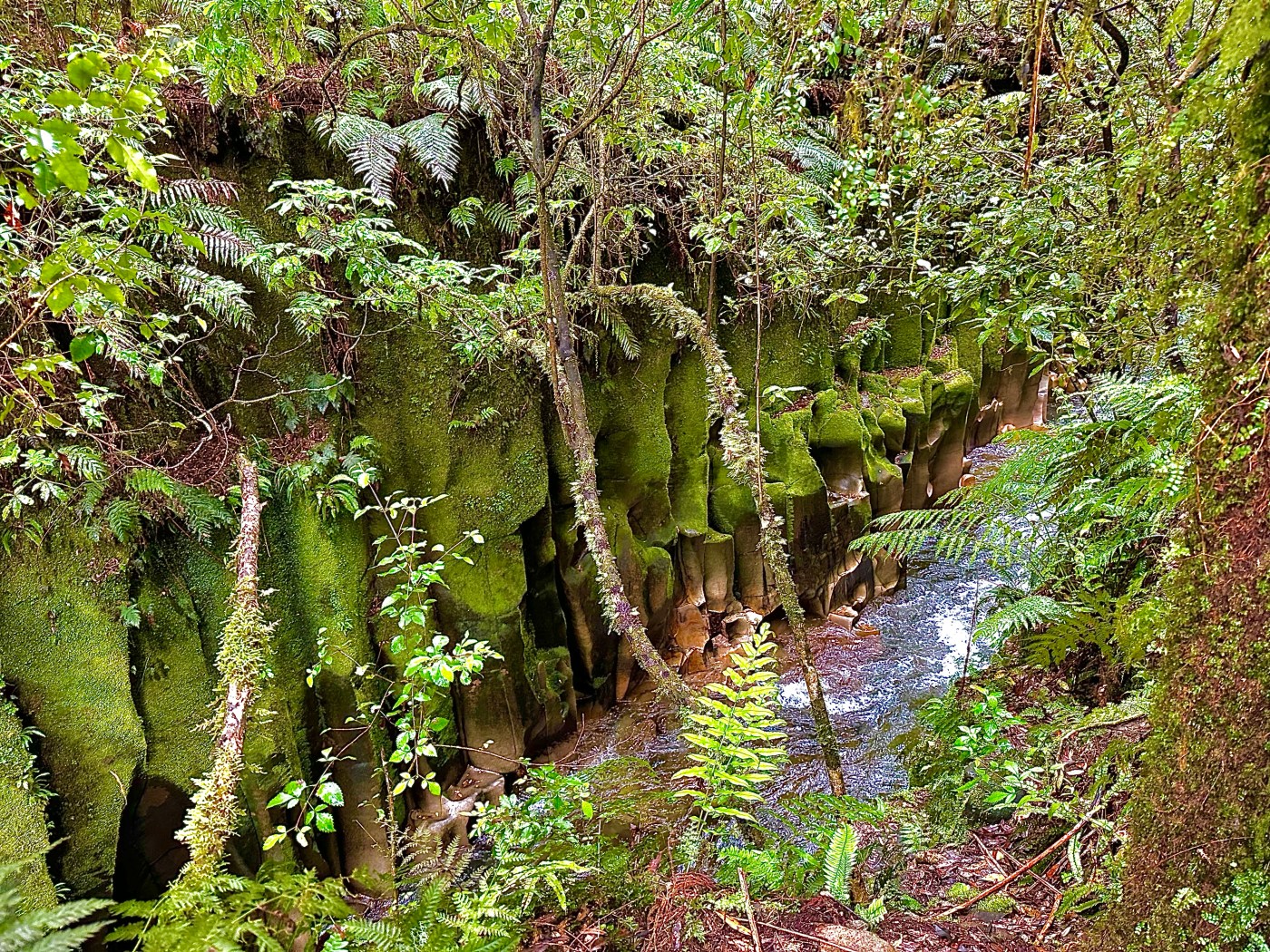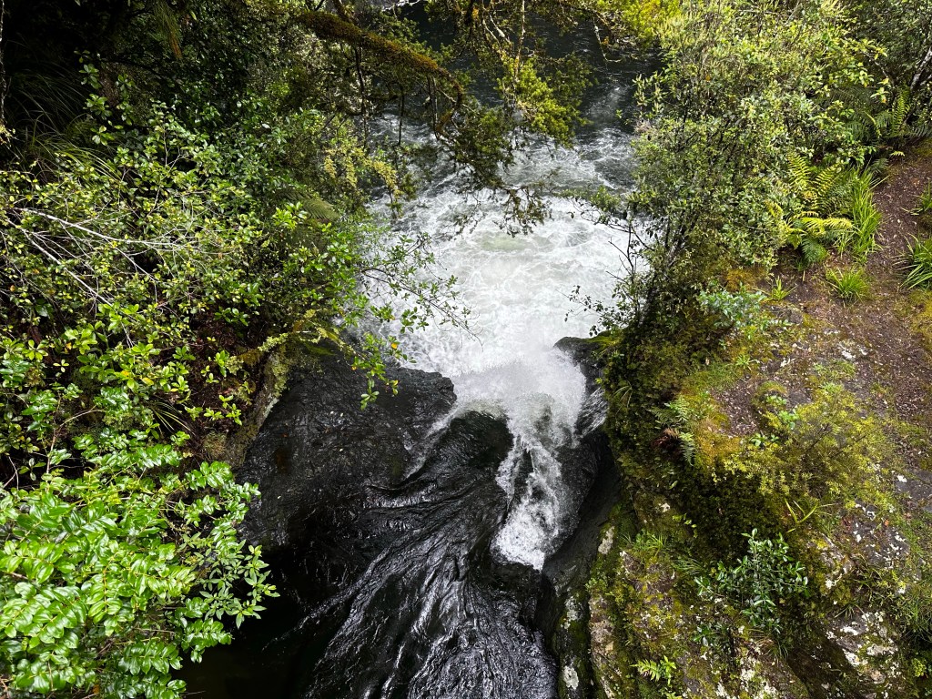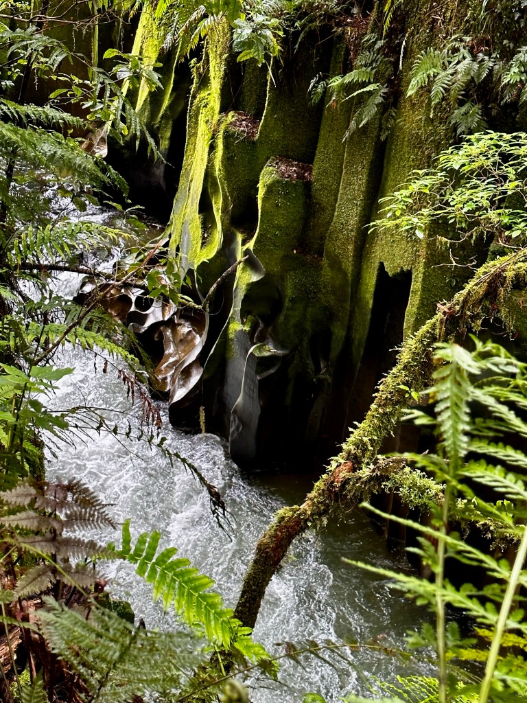 I passed a trail marker with three red “X”s in a column. What he hell does that mean?! With my mind focused on wondering what the red “X”s meant and if I was going the right way I didn’t even realize I had entered the land of the fairy tale canyon. I tramped off the main track close to the edge; like most things it wasn’t nearly as much of a wow as the heavily edited images of it I had seen. But Te Whaiti Nui a Toi Canyon was still gorgeous; walls of mossy rocks with ferns lounging over the edge and the river narrow as it ran through.