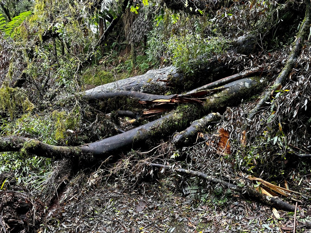 With the mini “slips” (aka: rock slides) I passed on the already narrow trail, narrowing it even further, it was so clear that it wouldn’t take much of a storm to make this completely impassable. A word on vocabulary here… in New Zealand they call the paths “tracks” as opposed to “trails” and use the words “walking” or “tramping” instead of “hiking.”