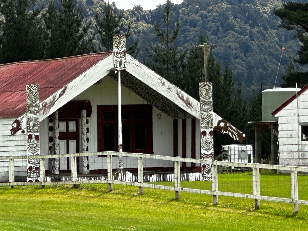 Nearing Whirinaki and turning down the final marked road, I passed two Māori meeting houses. It was really cool to see them out in the middle of nowhere like this, in their natural and authentic state, as opposed to the ones I’ve seen previously in more commercialized areas. The homes sat across from a fanciful pasture. I would love to be a fly on the wall and know what actually goes on in there.