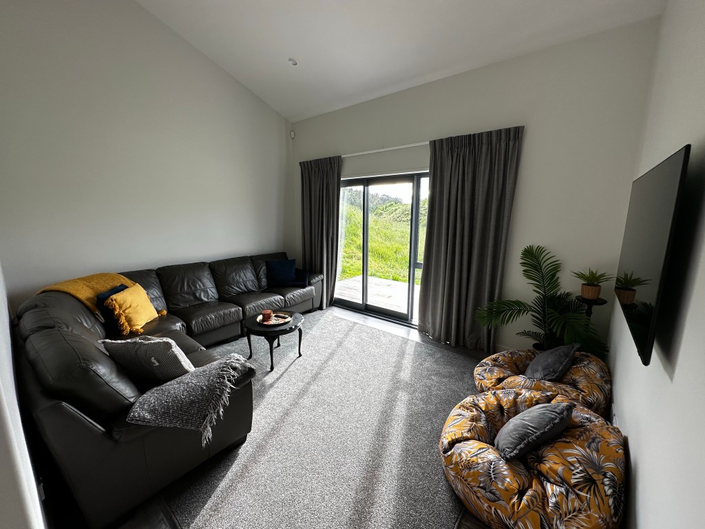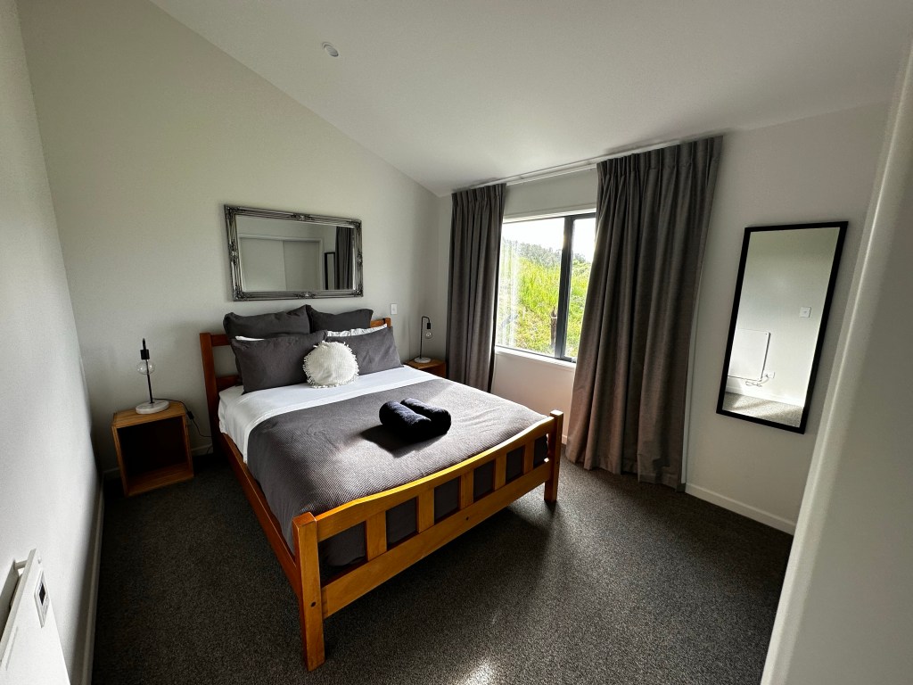 With tension leaving my body as I drove back towards the redwood forest part of town I was happy to find myself in a new development. Shiny new cottage homes built on large properties with lush green pasture and forest views. My Kiwi Cottage was a little quirky in design but new, clean, and felt safe. This will do.