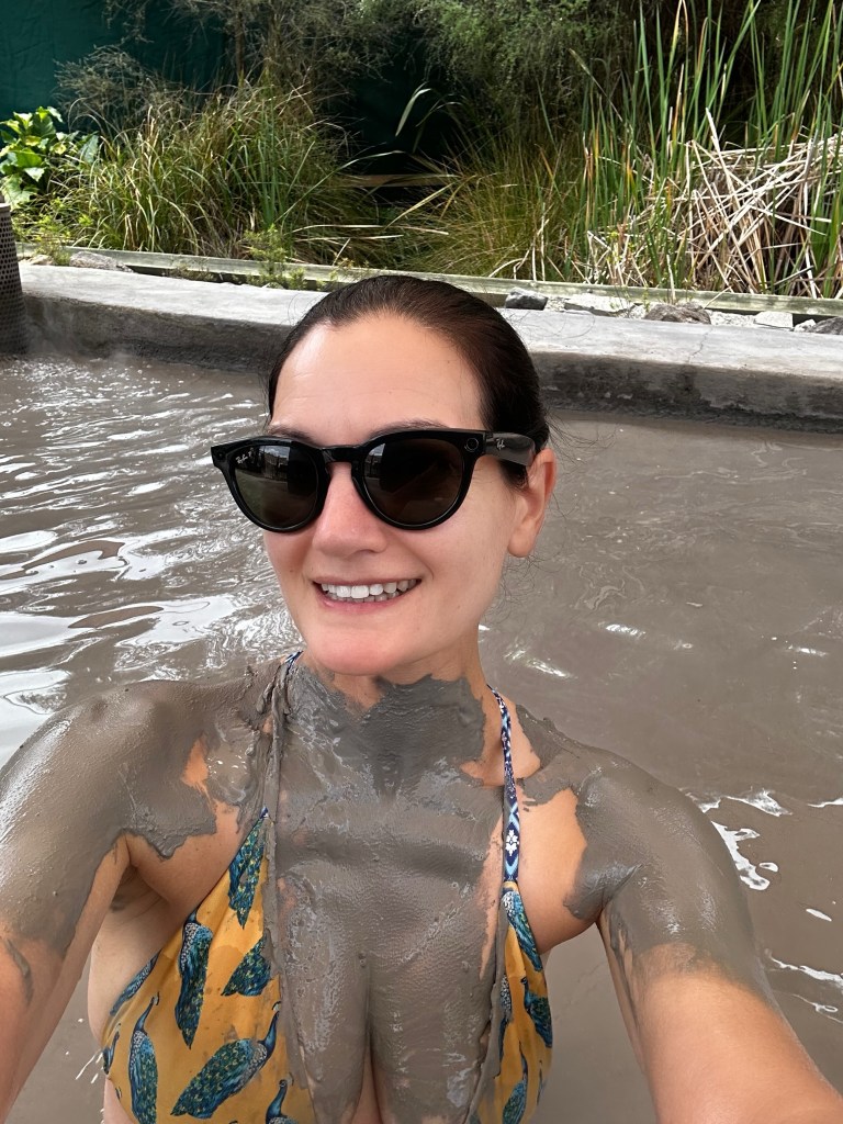 After walking the path I changed into my swimwear and was directed to a mud spa. When I say mud spa, I really mean mud spa, think like a backyard jacuzzi spa but full of thick mud on the bottom, muddy water, and a basket of fresh made (directly from a certain mud pool in the geothermal park each day) to pull from to rub on your body. Supposedly 20 minutes is the ideal mudding time. A couple was in the spa when I was first directed but left soon thereafter and I sat listening to music, rubbing mud all over myself, and trying not to get bored. Just when I was reaching peak boredom and about to call it on my own, the attendant came over to let me know I’d hit the 20 minute mark. Perfect. I rinsed off in the outdoor shower and made my way into the sulphur spa. This time a “fresh” clear water with sulphur waters piped in from the geothermal park each day. I was getting antsy though and after about two minutes my boredom got the best of me. I retrieved my locker (ie: a plastic bin that the attendants watch over) and spent an excessive amount of time in the changing room shower soaping myself up and trying to wash the eau de sulphur scent off of me.