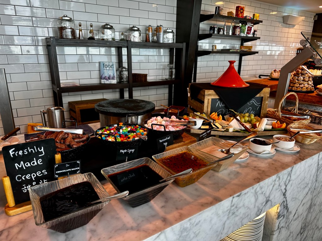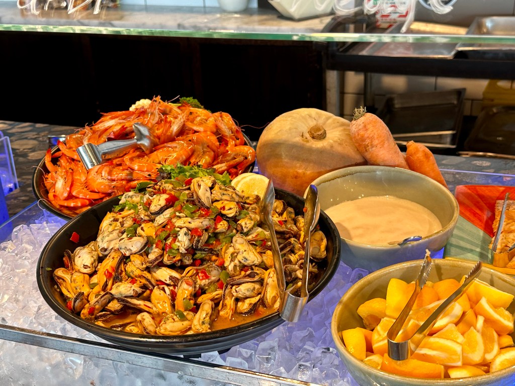 Dinner at the Stratosfare restaurant was next on my itinerary. And again nobody cared that I was a few minutes late. I was sat at a “premium” window table and brought a glass of wine of my choosing. I wasn’t sure what to expect from Stratosfare given that it was really a bit of a tourist trap restaurant but the buffet, their only dining option, was impressive. I barely sipped on my wine after having had plenty at my wine tasting but filled my belly with all sorts of salad, dolmas, rolls, mussels, meats, veggies, and desserts. I really need to cook more pumpkin at home. I overheard someone at a nearby table order a Lagavulin 16 scotch and curiously looked at the drink menu to see what the going rate was for it there – I was shocked at how affordable, at the equivalent of $7 USD per ounce pour, it was the cheapest I’d ever seen it on a menu.