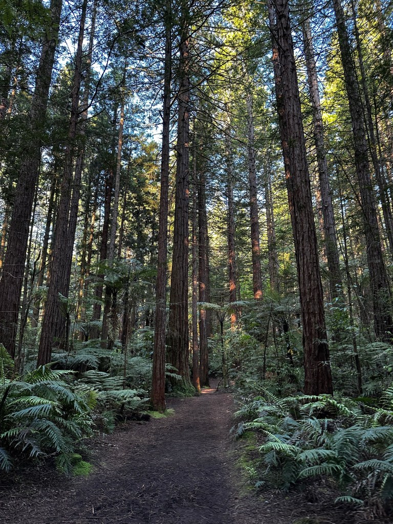 I had over an hour of sunlight left and needed some more movement. I chose the Mokopuna Trail, with its perfect one hour hike time estimate, and marched off into the shadowy redwood forest. The trail markers were terrible and I wasn’t feeling like I was following the trail in the shape I expected based on the trail map. After 25 minutes I decided to turn back and and return to my car via the way I came; its just a redwood forest (ironically one full of California redwoods) so everything looks the same anyways. To my surprise, even back tracking didn’t work out quite right because I popped out onto the main road that borders the forest. I’m sure as hell not on the trail or even properly back tracking but being on the main road I’m also not lost so this is good enough.