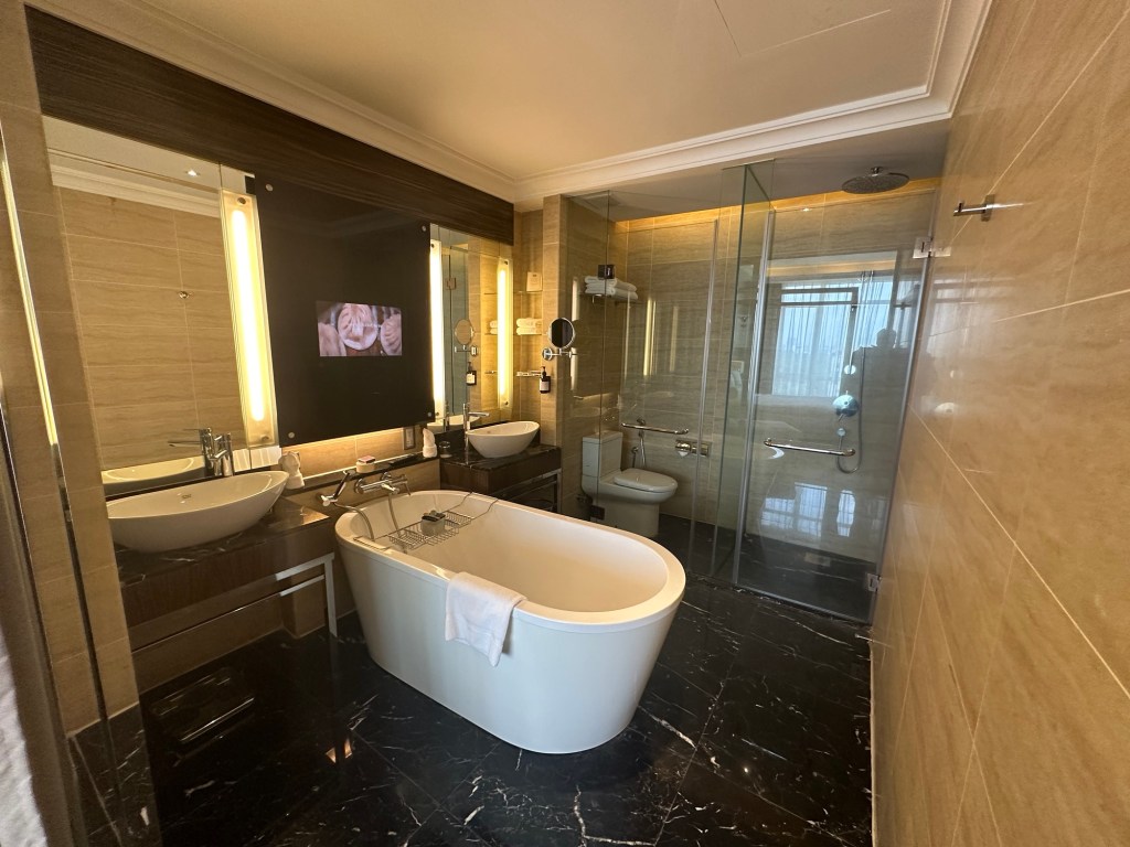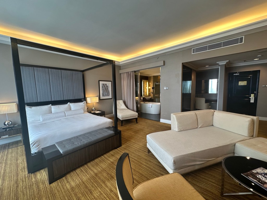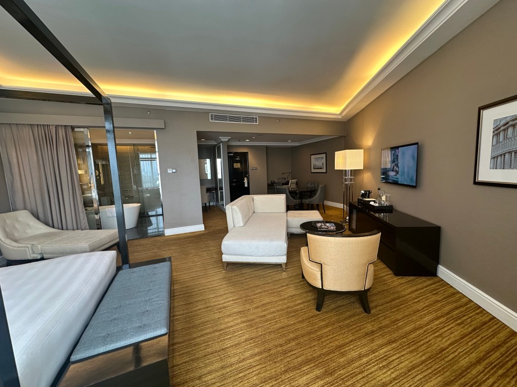 Though I was hopeful my request for early check-in would pay off, getting here by 12:30pm was a little aggressive for early check in and my room wasn’t quite ready. No problem; I lounged in the lobby on my iPad eating a Chomps and protein bar until the message came through an hour later that it was all set. When planning this trip I decided that it could be a rough flight here without flying business and I wanted to set myself up for rest so I chose this hotel and booked afternoon High Tea and a massage so I had no reason to wonder off property at all and could focus on rest. It’s incredible how affordable this city is. After taxes and fees, my junior suite is only $150 USD for the night!