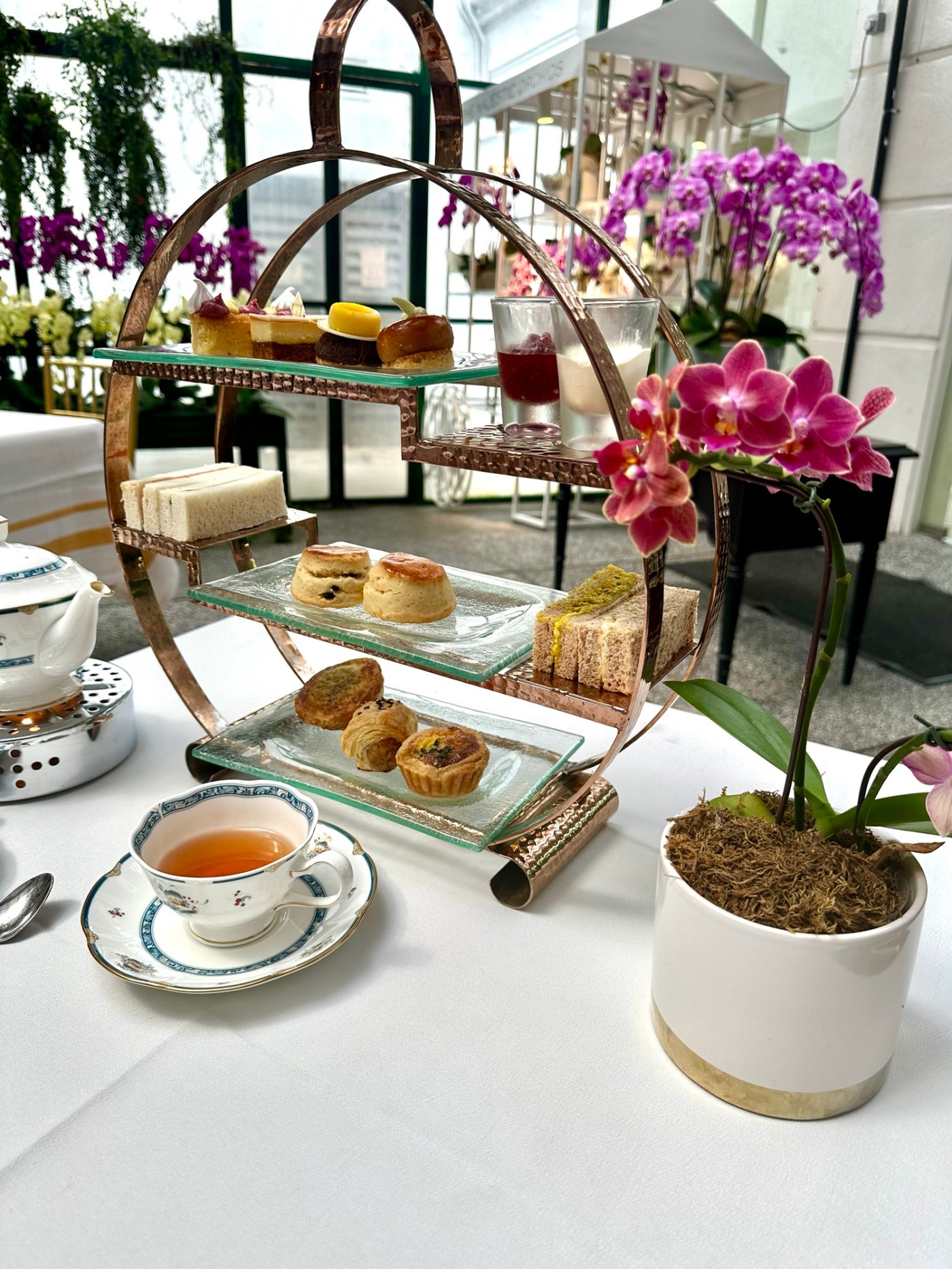 After a much needed shower and refresh I went down to the Orchid Conservatory for my High Tea reservation. It looked way cooler online and was a bit disappointing in person. I almost had them move me to the tea lounge instead but language barrier was rough so I rolled with it. Also disappointing was the selection of teas; while my rose vanilla tea was beautiful and delicious, for a High Tea I expect something a little more than a selection of Dilmah tea bags that the server steeped on his own, no presentation or tea timer even.