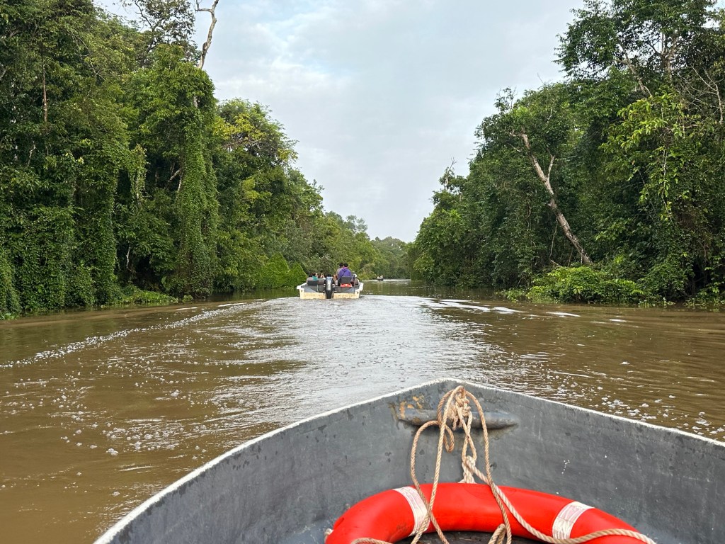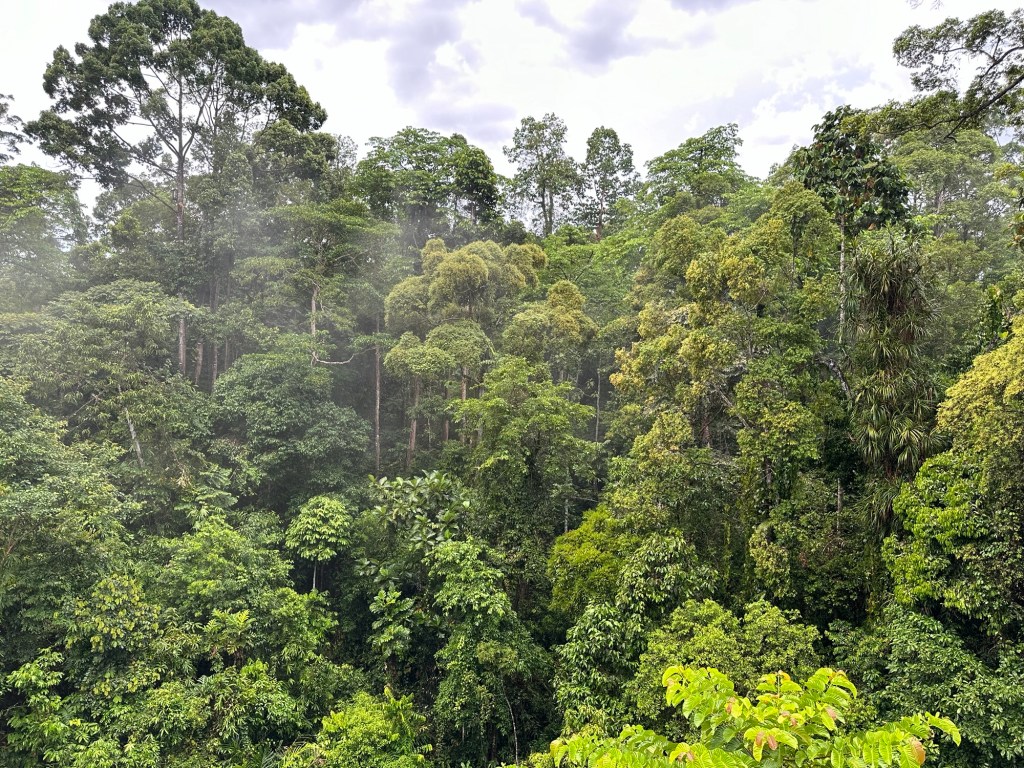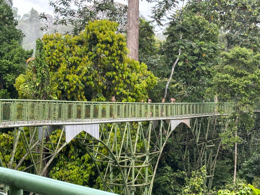 Kurt tempered our expectation with a warning that, due to the time of day, we might not see any animals. But it would still be a beautiful walk and he handed out ponchos before we disembarked the bus at the Rainforest Discovery Center, because of course there was more rain in the forecast. Before we’d even made it to the start of the walkways an orangutan was spotted swinging in the canopy overhead.