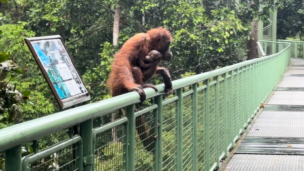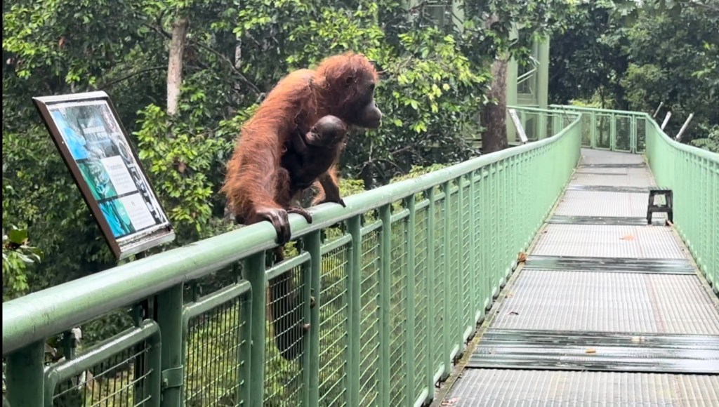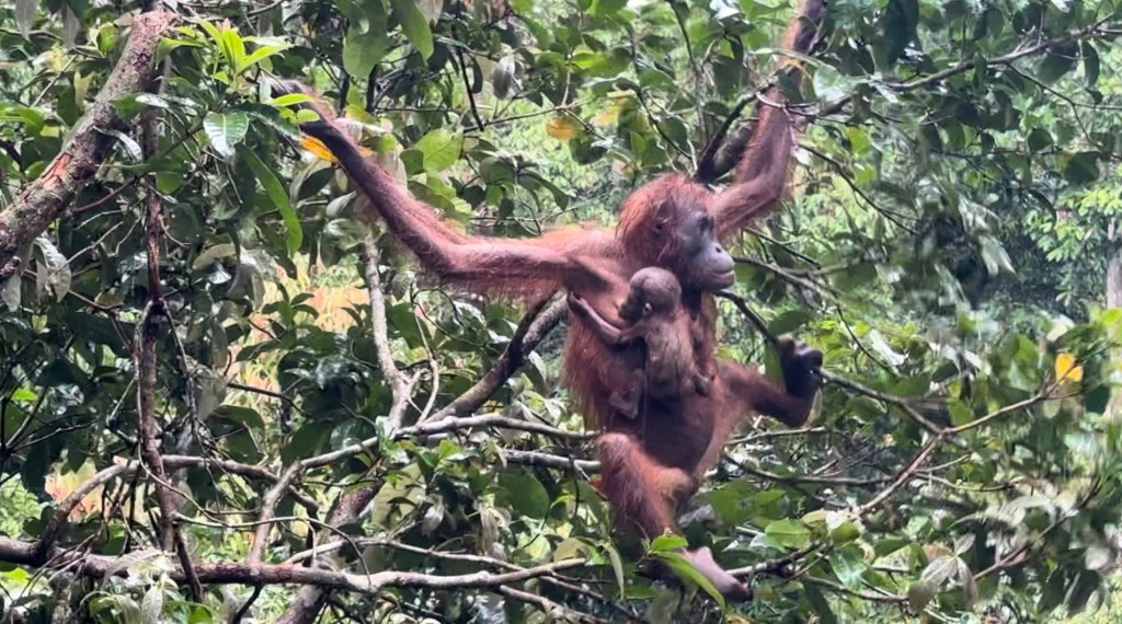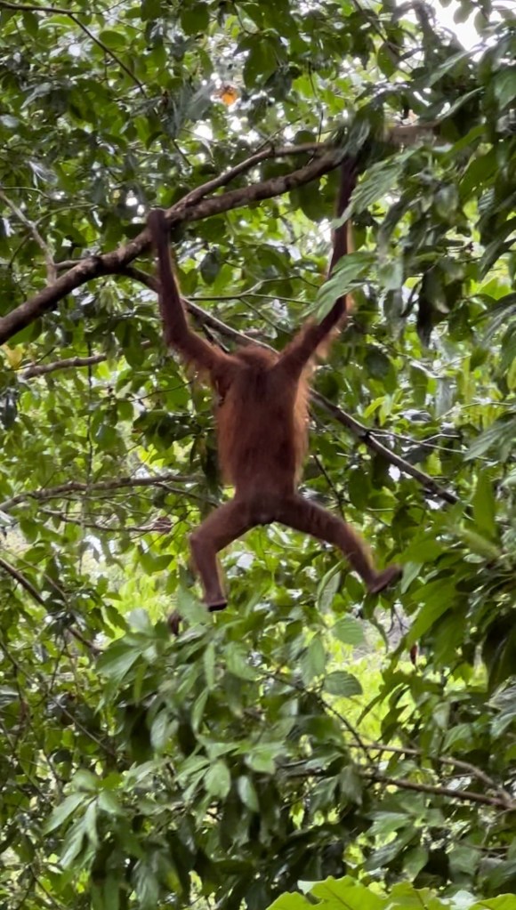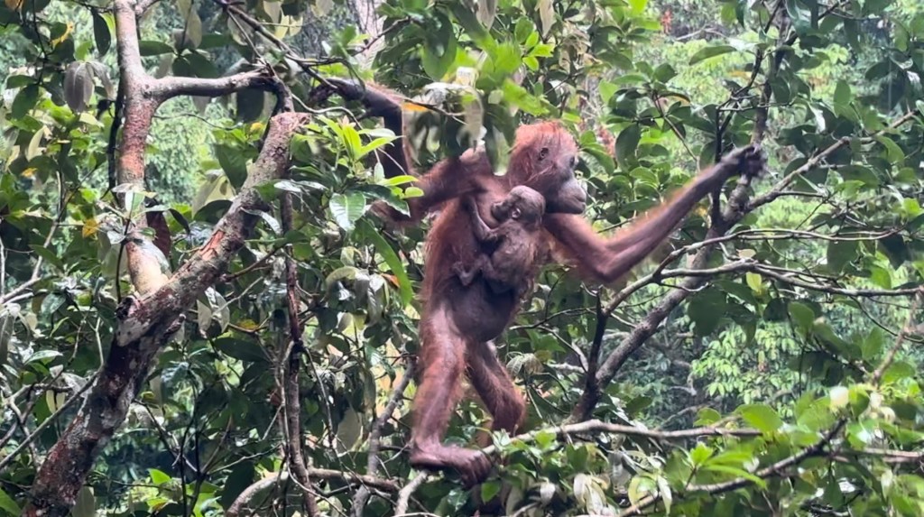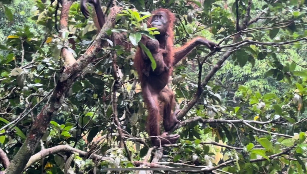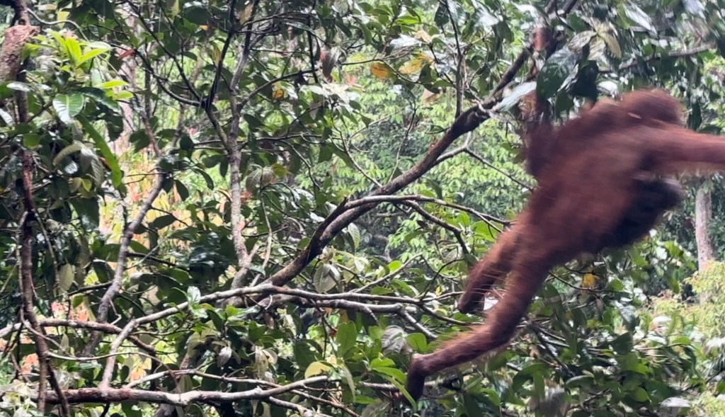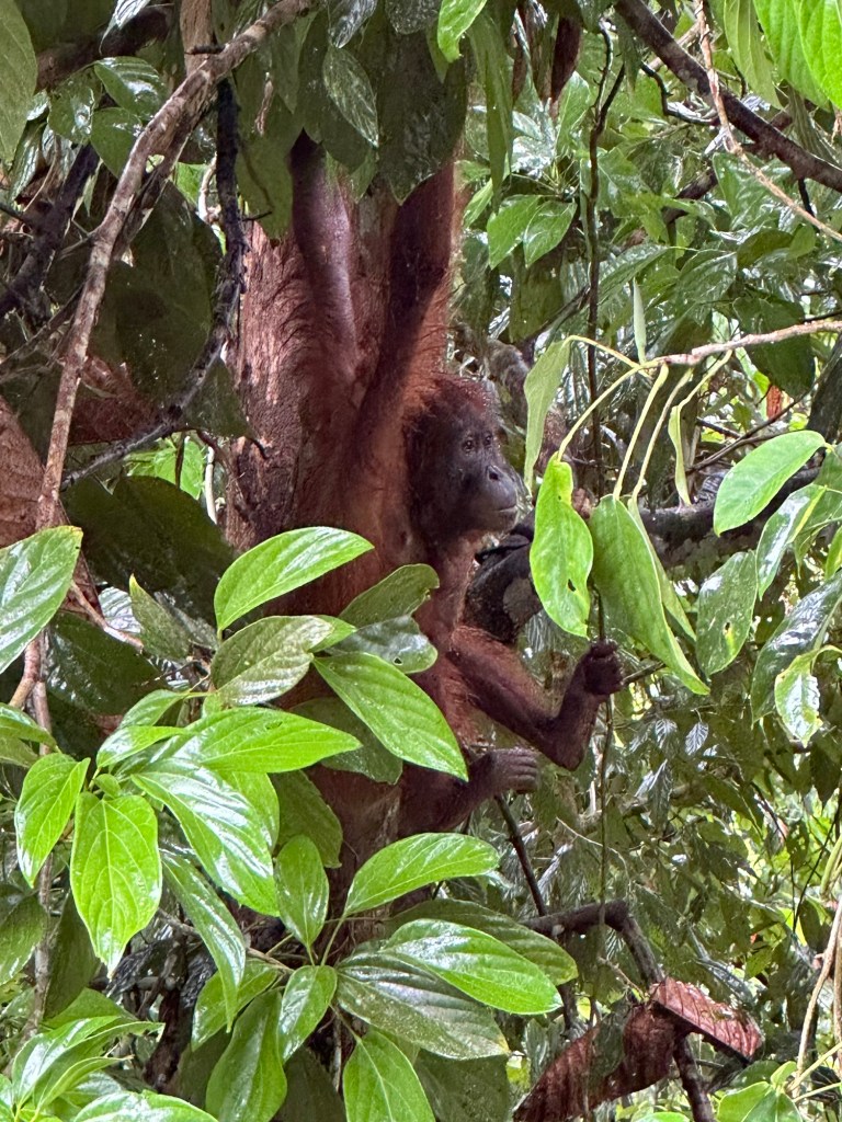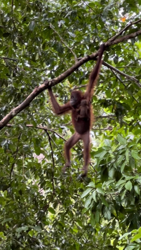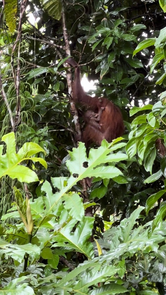 While the rain had miraculously stopped when we saw the mama orangutan and her baby, it started up again as if on cue just as we reached the exit. I spent the half hour drive to the hotel sorting through all my mama orangutan footage and the individual scenes I captured; I even caught one of the baby clearly nursing!