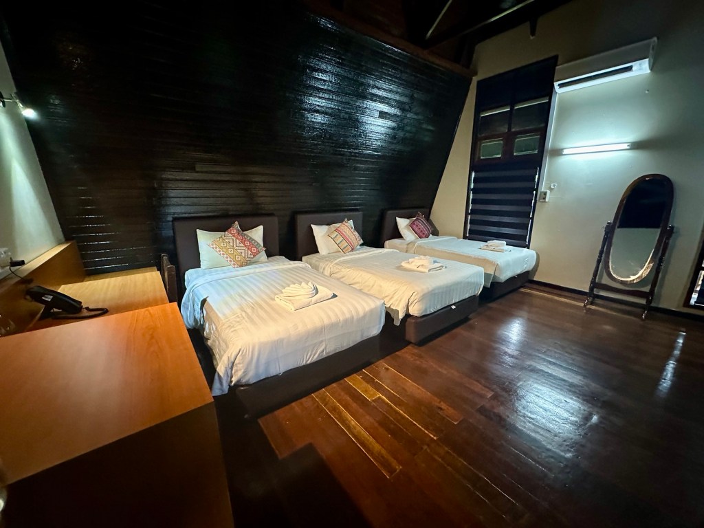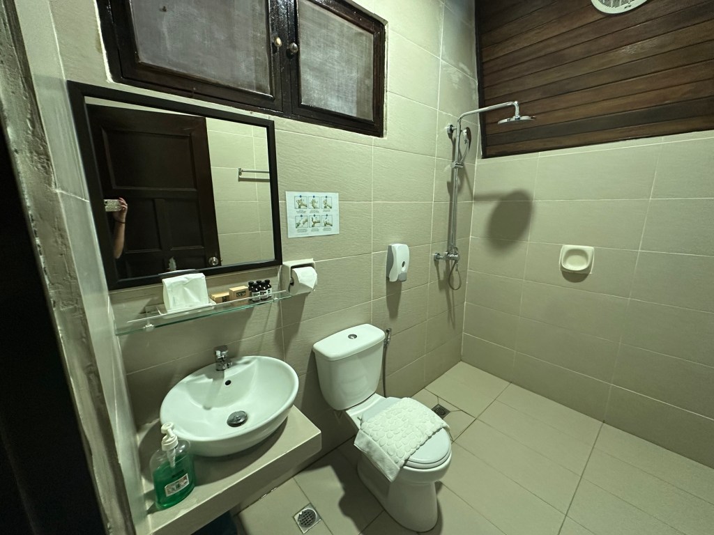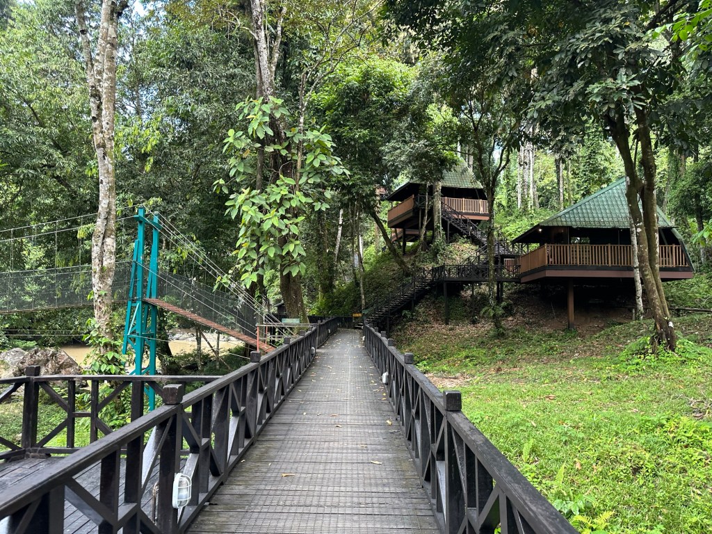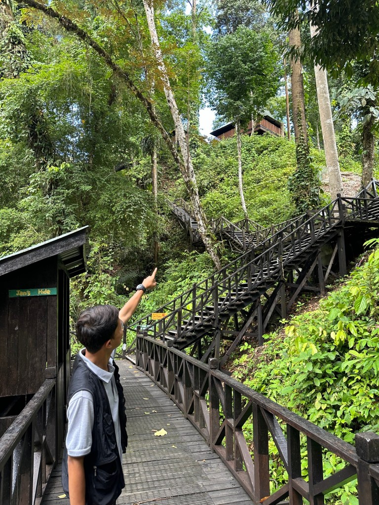 Shortly after leaving the airport, the vans turned down a bumpy dirt road and the next 90 minutes included bouncing around the van until we made it to Tabin Wildlife Resort. Must of the ride was in silence and it was quite nice to have some quiet time. The sun beat on me through the window but it was worth it for the coveted single seat with extra legroom that I had snagged. Until it wasn’t and I was worried I was actually getting a sunburn despite have draped a shirt over my exposed skin and so I scooted into an empty spot next to another of the ladies. There is no cell service and the wifi is currently only kinda sometimes working very weakly in the open-air restaurant. We surrendered our shoes before walking into the restaurant area, same as was the protocol at Sukau Greenview, and had yet another buffet lunch of the exact same things; except this one included pandon pudding for dessert.
