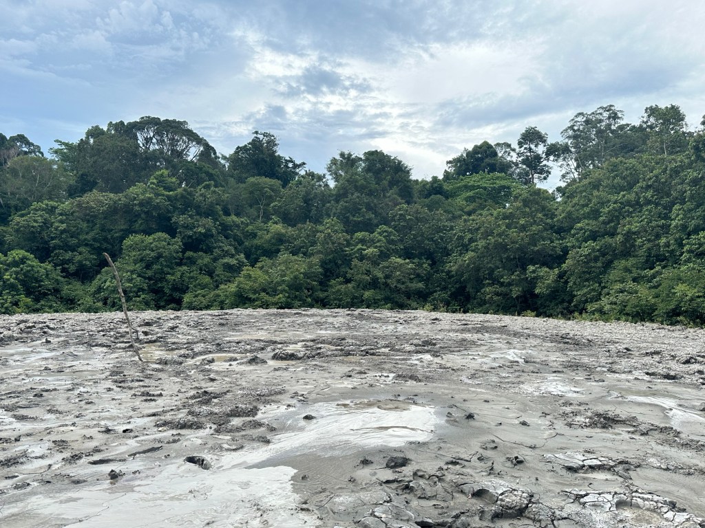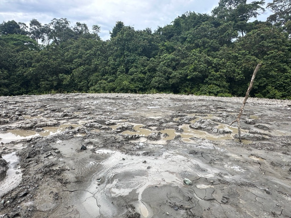 It may have only been 1 km but it was an annoying 1 km in the sticky mud and the mud volcano at the top was not impressive. It was just a flat plane of mud with some bubbles from geothermal activity, we are in the ring of fire with Indonesia, but the bubbles are from gas and it’s not even warm, its not at all like an actual volcano. Dead trees lined one side; as the mud expands and envelopes the base of the trees it kills them. The mud flat is supposedly a popular place for animals to get a nutrient boost, treating the mud like a salt lick, but not a single creature was seen on the hike or at the mud “volcano.” It used to be mostly pigs that would hang out at the mud volcano but Lee has not seen any in over four years since the swine flu came through and wiped out half the pig population.