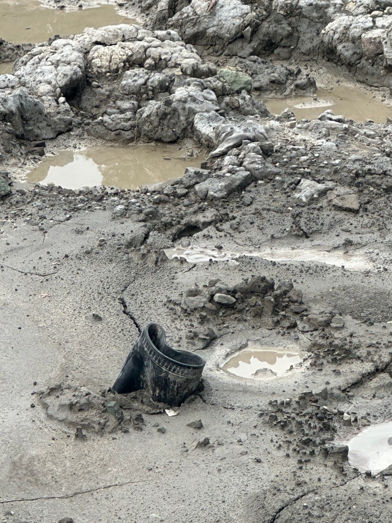 A boot was stuck in the mud near the “center” of activity where someone had not been paying attention and stepped into the soft mud and was unable to pull the boot back out as the mud sucked it in. The only male traveler, besides the host, on the trip is a pretty annoying clown of a boy and he went tramping straight through the softer mud, his leg sinking into the knee. He was able to get his leg back out but then kept trying to keep moving towards the softer mud despite the guide suggesting he shouldn’t move any closer and saying he should stop. Girls laughed and fawned over his antics and I couldn’t help myself but to say out loud, maybe even twice, “It’s not funny when you’re just being stupid.”